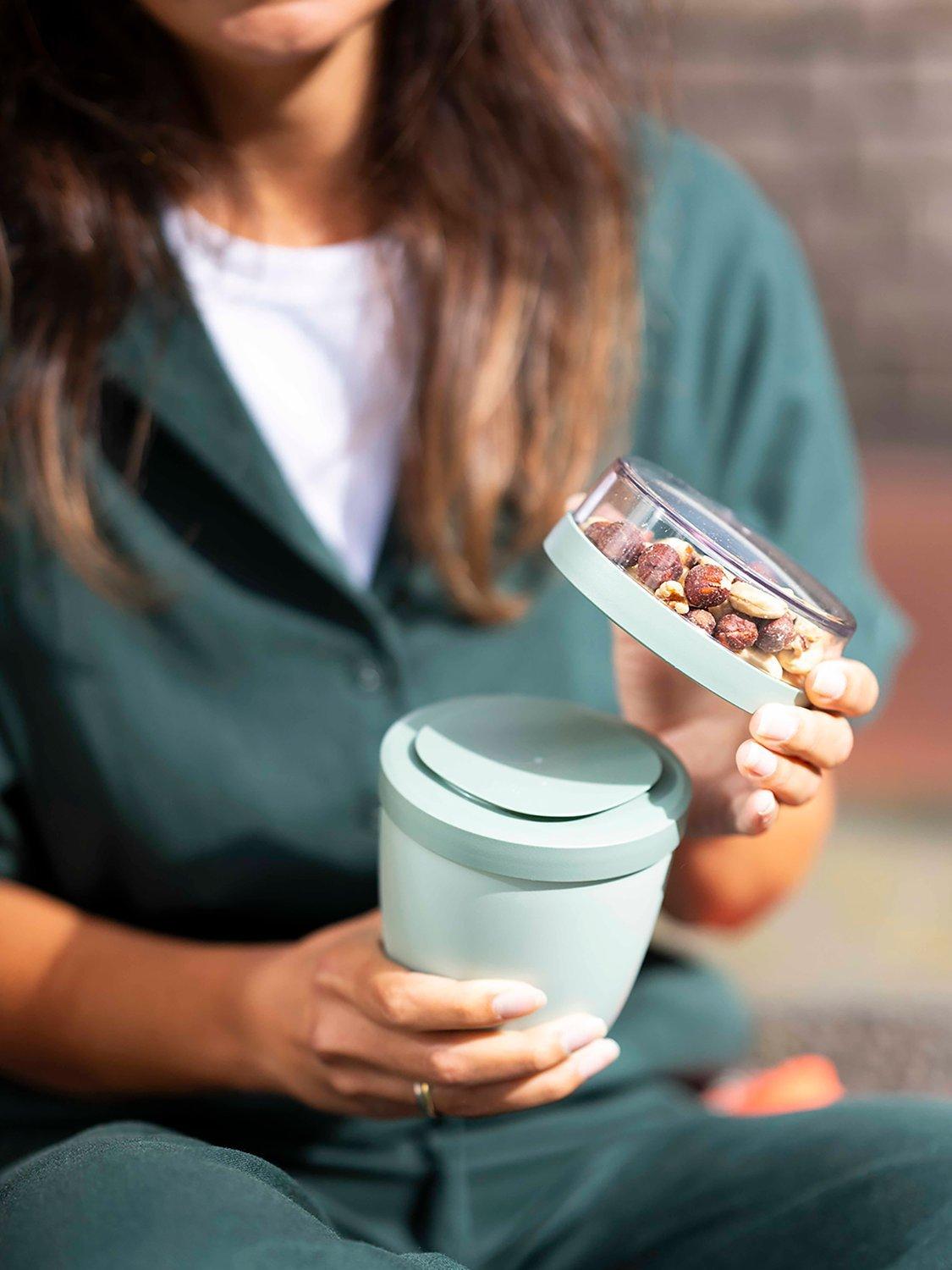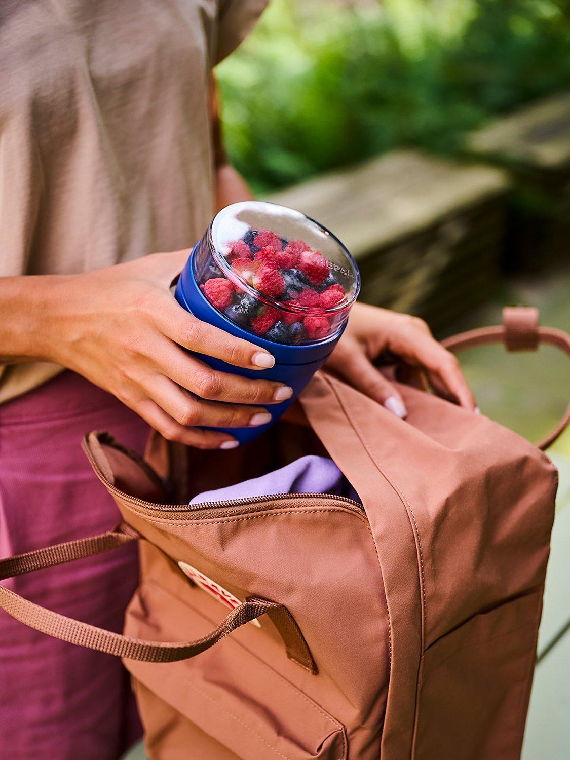 Easy to clean, it's dishwasher safe and ideal for work lunches, food on the go and for picnics. It opens with a twist and has a smaller 200ml compartment for keeping food separate when you're later mixing yoghurt and muesli or soup and croutons.