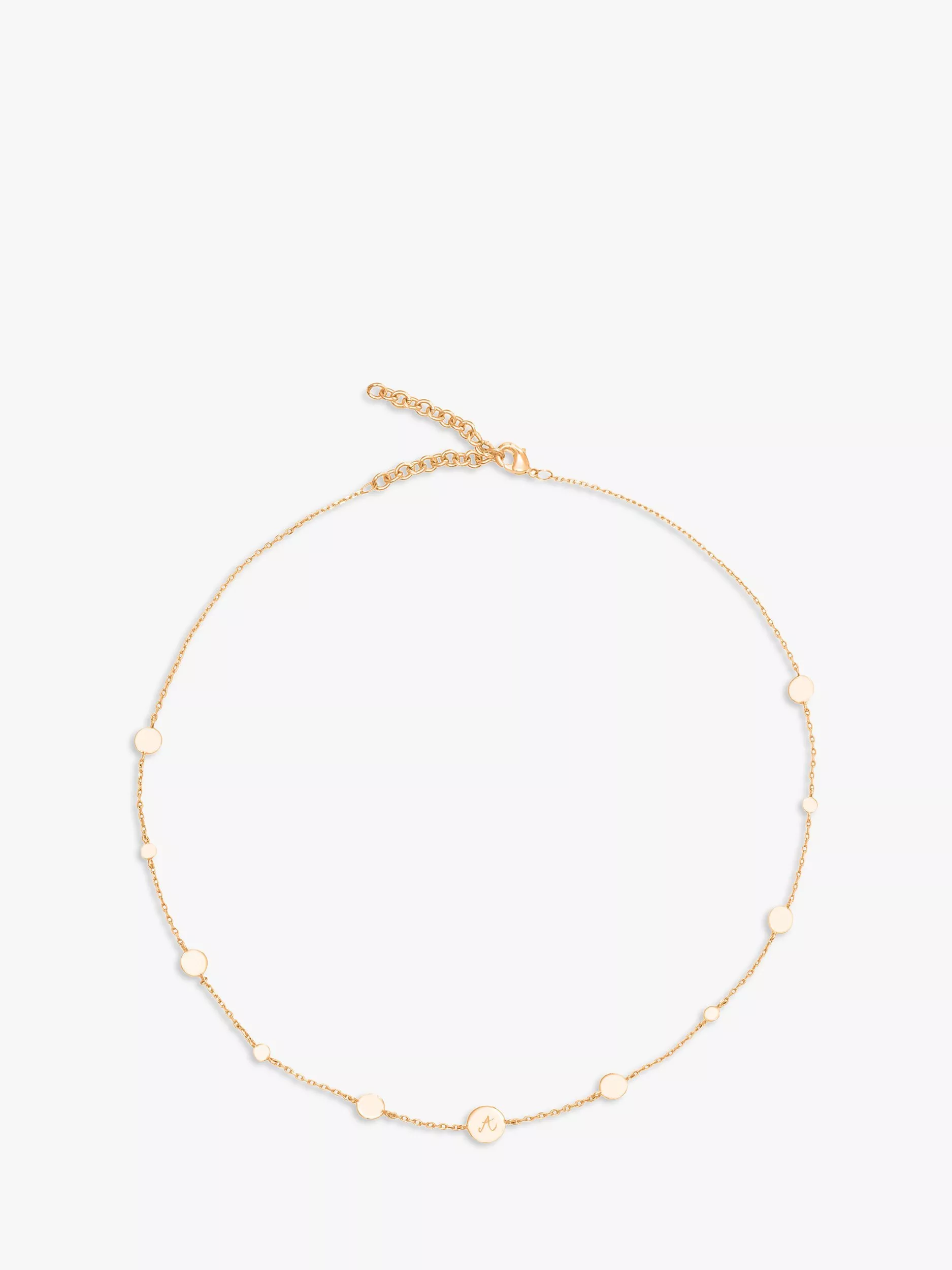 Give the perfect gift with Merci Maman's initial pastille necklace. Choose to personalise your necklace with up to 7 initials on the mini pastille discs. This necklace is the perfect length for layering with other chains or wearing on its own.