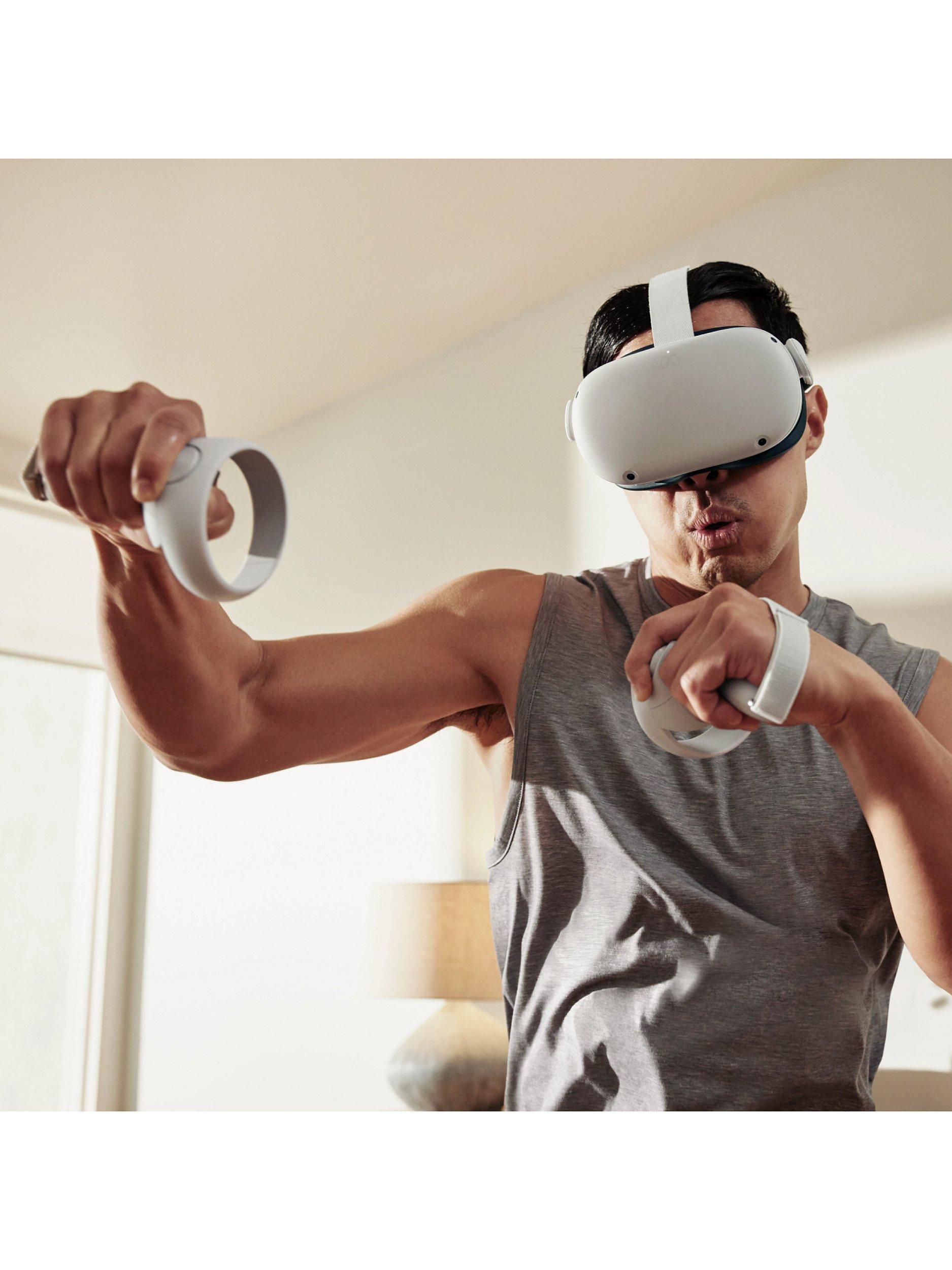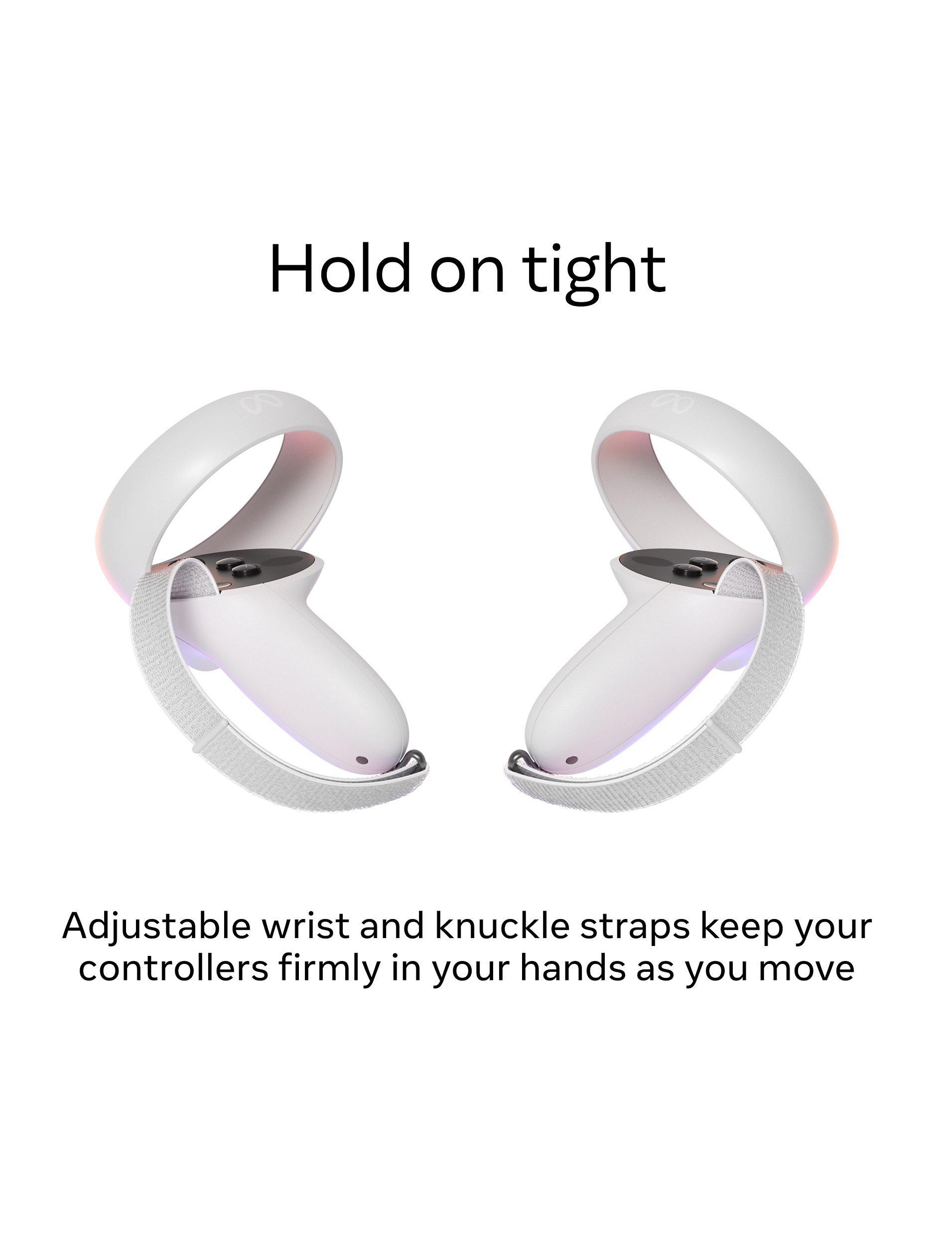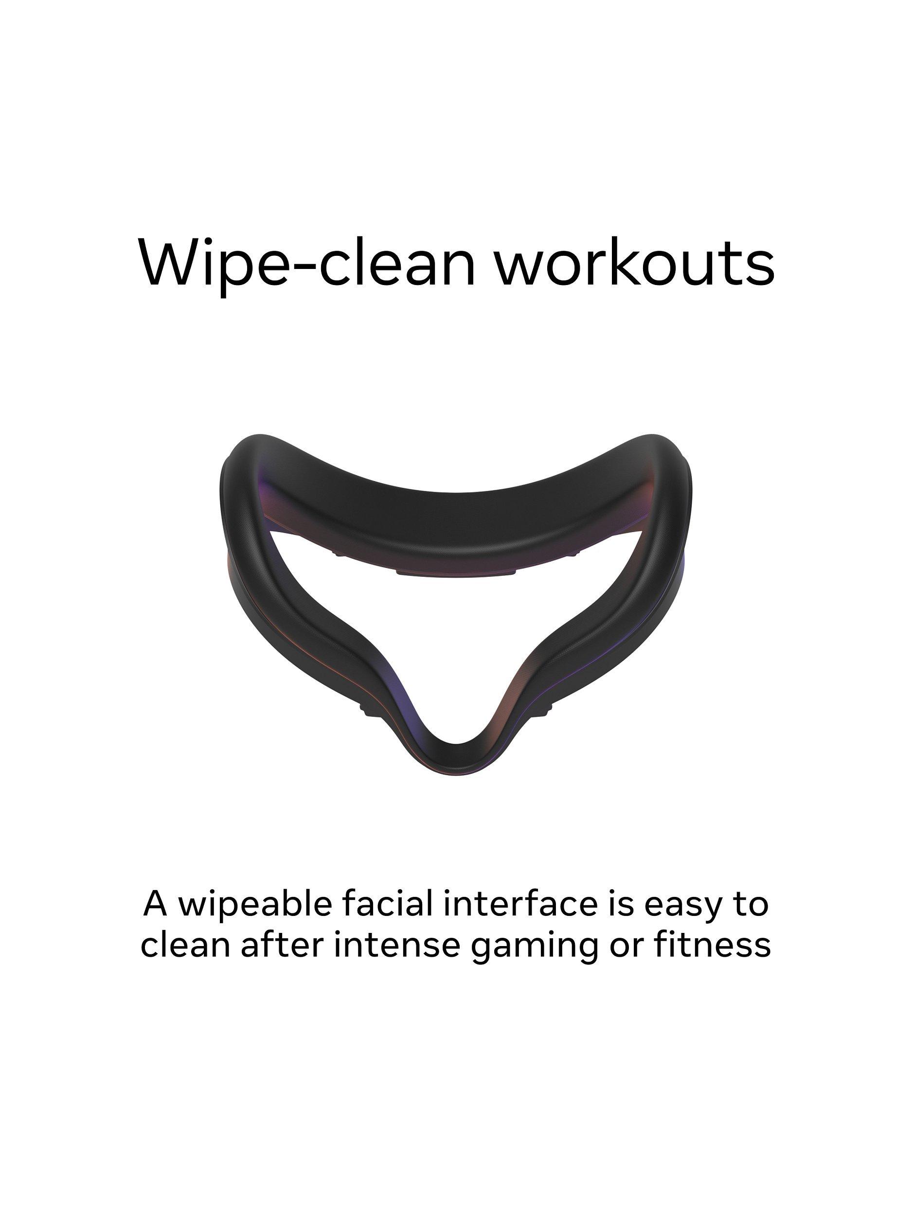 The Meta Quest 2 Active Pack contains accessories designed to keep your system clean and safe during energetic gaming and workouts in VR. It contains a wipeable facial interface for easy cleaning and wrist straps and adjustable knuckle straps to help keep your controllers firmly in your hands as the action intensifies.