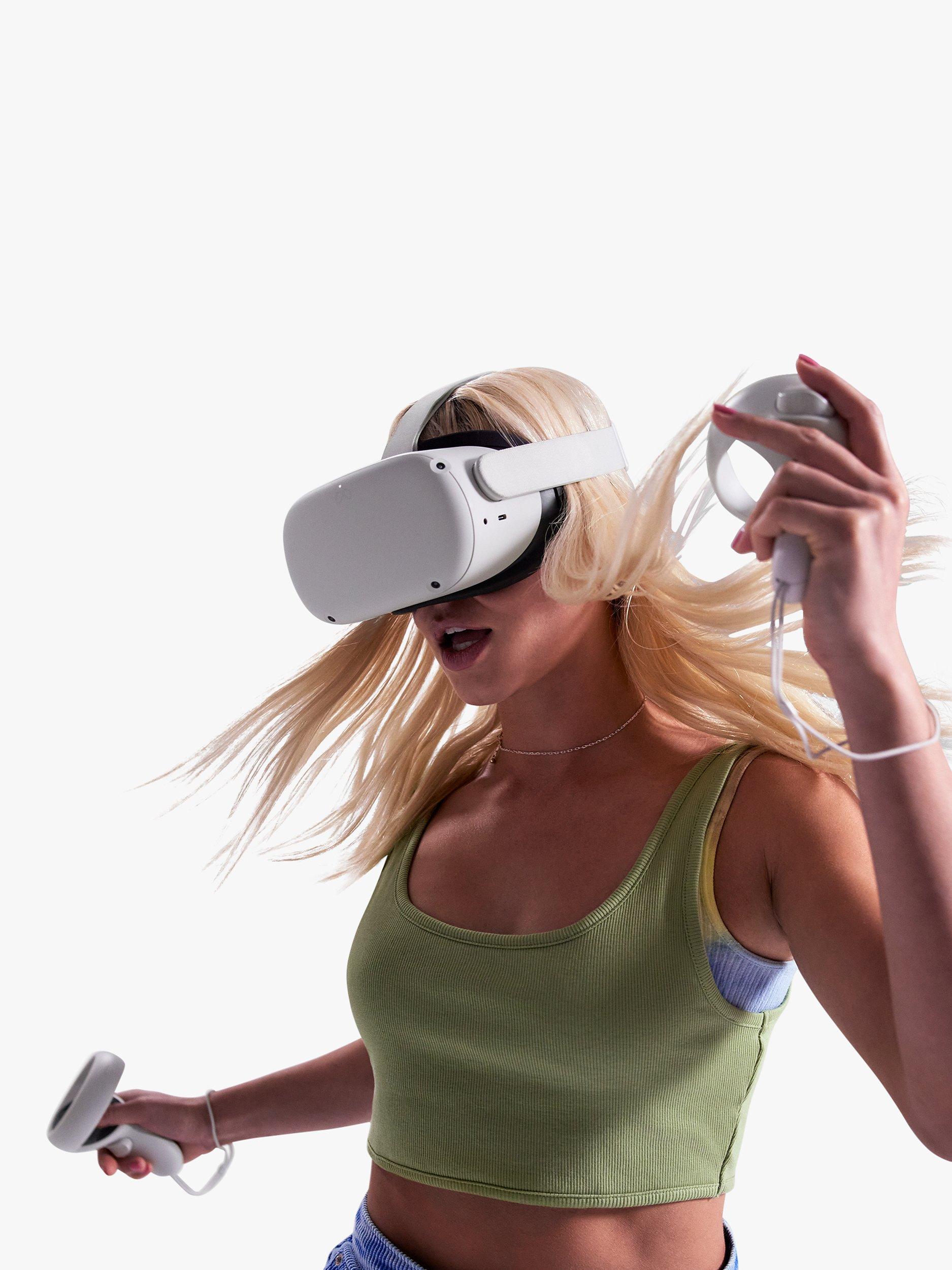 Quest 2 is the all-in-one system that sets you free to roam in VR. Simply put on the headset and enter fully immersive, imagination-defying worlds. A built-in battery, super-fast processor and high-resolution display keep your experience smooth and seamless, while 3D positional audio, hand tracking and haptic feedback make virtual worlds feel real. Meet, play and build communities with people from all over the world. Join quests, revolutionise your fitness regime, or collaborate with colleagues in innovative workspaces. And if you want to let friends and family into your VR experience, you can cast it to a compatible TV or screen as it unfolds*.