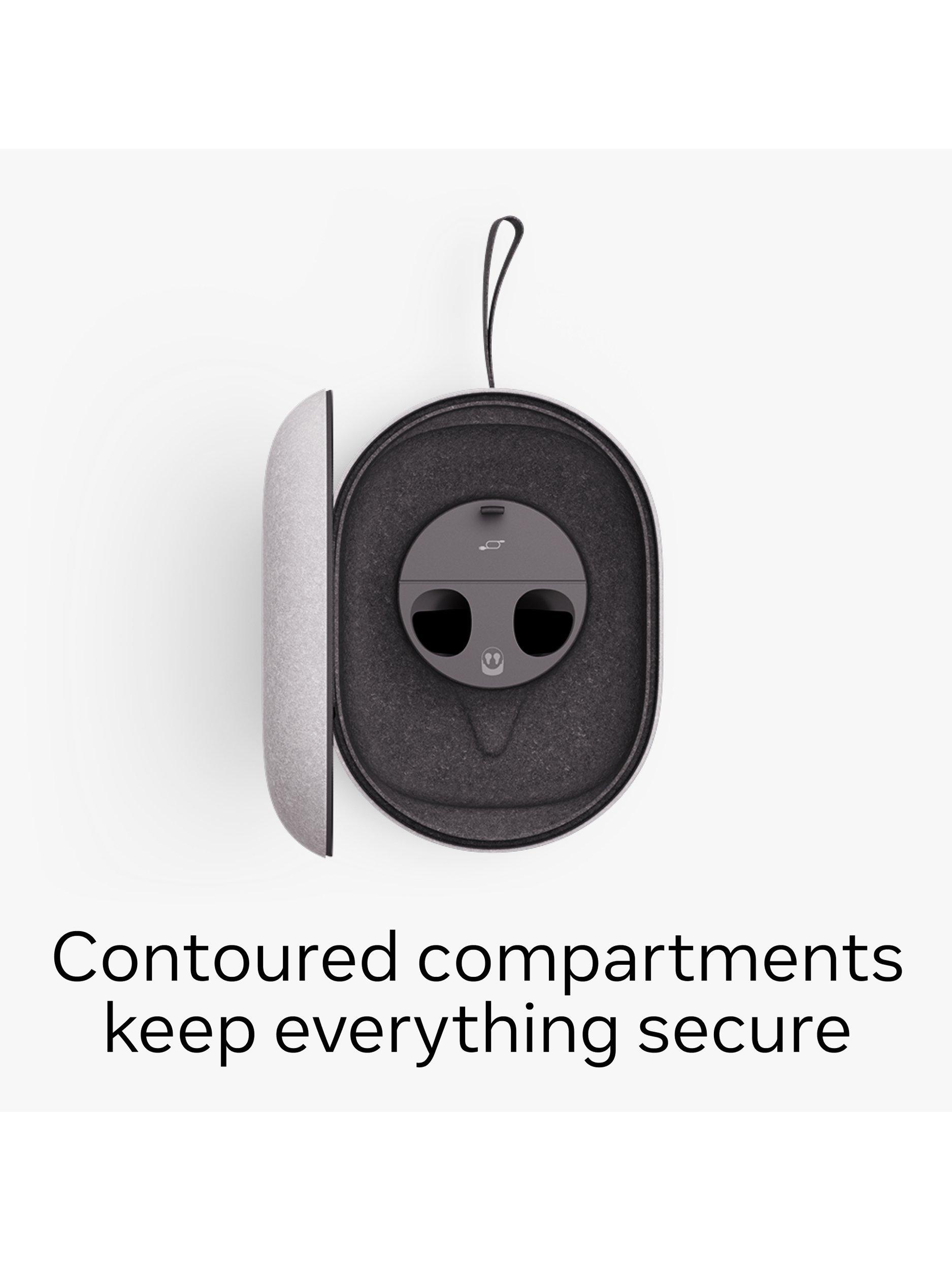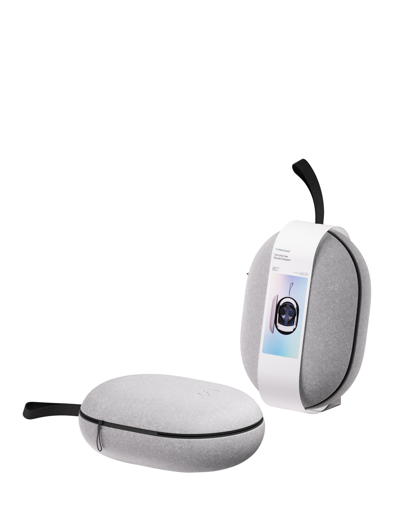 Take your headset and accessories on the go with style and protection. This case is designed to fit your headset, Touch Plus controllers, charging cable, adapter, head strap (standard or Elite) and Active Straps. The exterior shell features custom durable felt, and the inner compartments keep your gear organised and secure. With its lightweight construction, soft hand strap, zip opening and rounded profile, the case makes it easy to carry and access your Meta Quest 3/3S and accessories on the go. This premium Meta accessory ensures a perfect fit, durability and convenience for your mixed reality and VR setup.