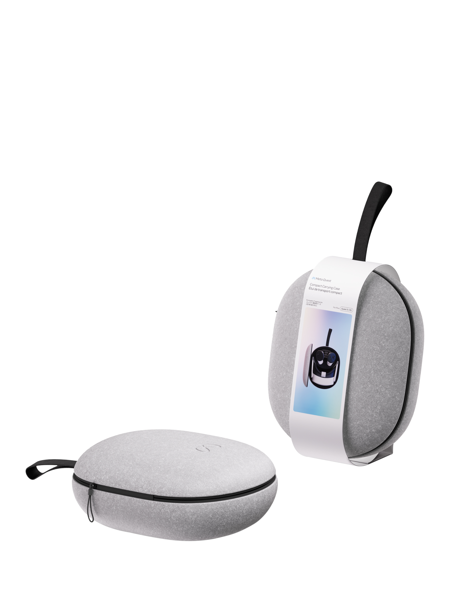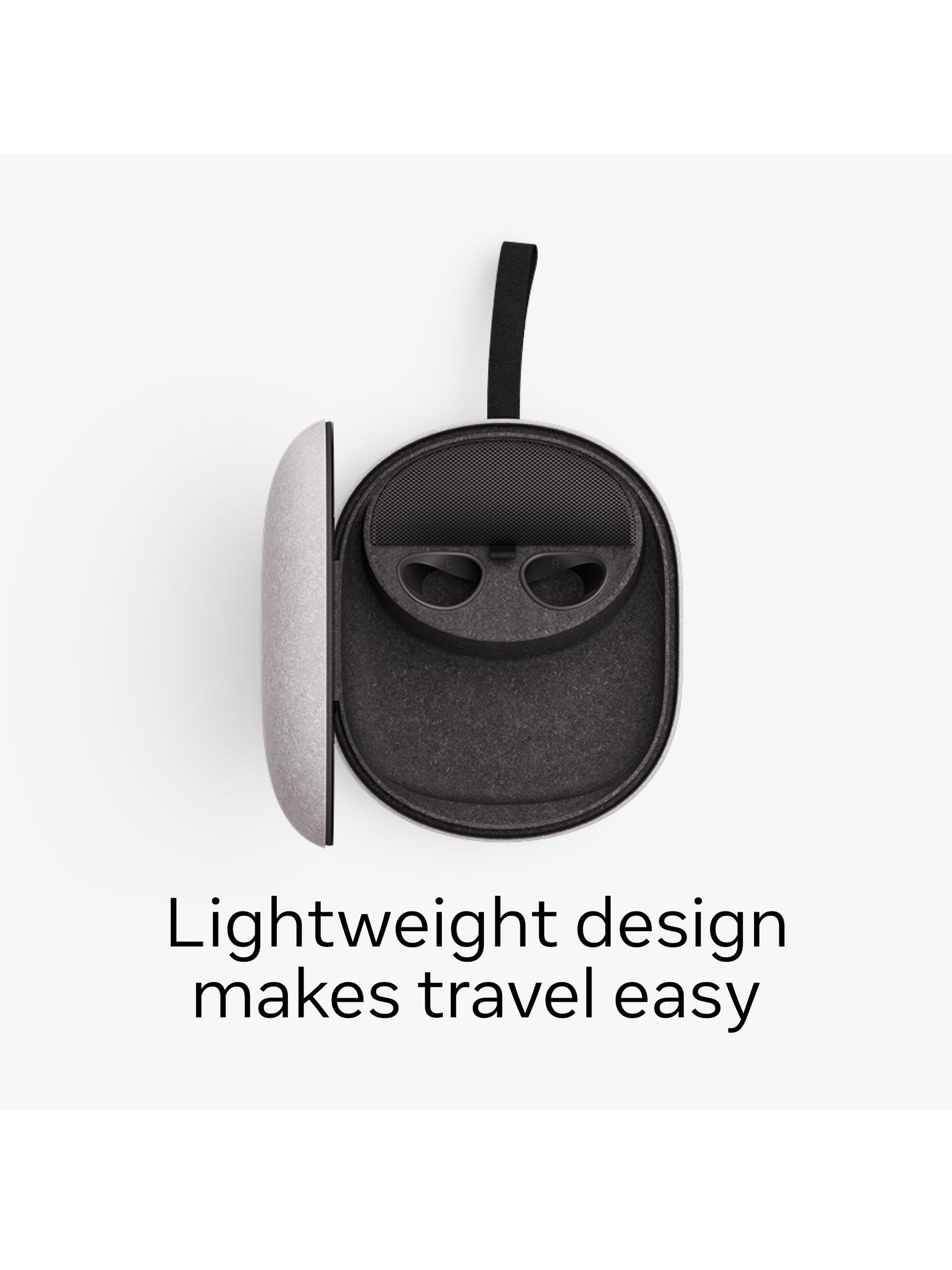 Enjoy your Meta Quest on the go with a hard protective case that takes up less space in your bag, so you can experience VR and mixed reality anywhere. The thoughtful design features an outer felt shell, soft hand strap and contoured inner compartments to keep your gear organised and secure. It’s designed to fit your Quest 3/3S, two Touch Plus controllers with lanyards or Active Straps, a charging cable and adapter. With its lightweight construction, zip opening and rounded profile, this premium Meta accessory makes it easier than ever to access your Meta Quest 3/3S and accessories wherever you are.