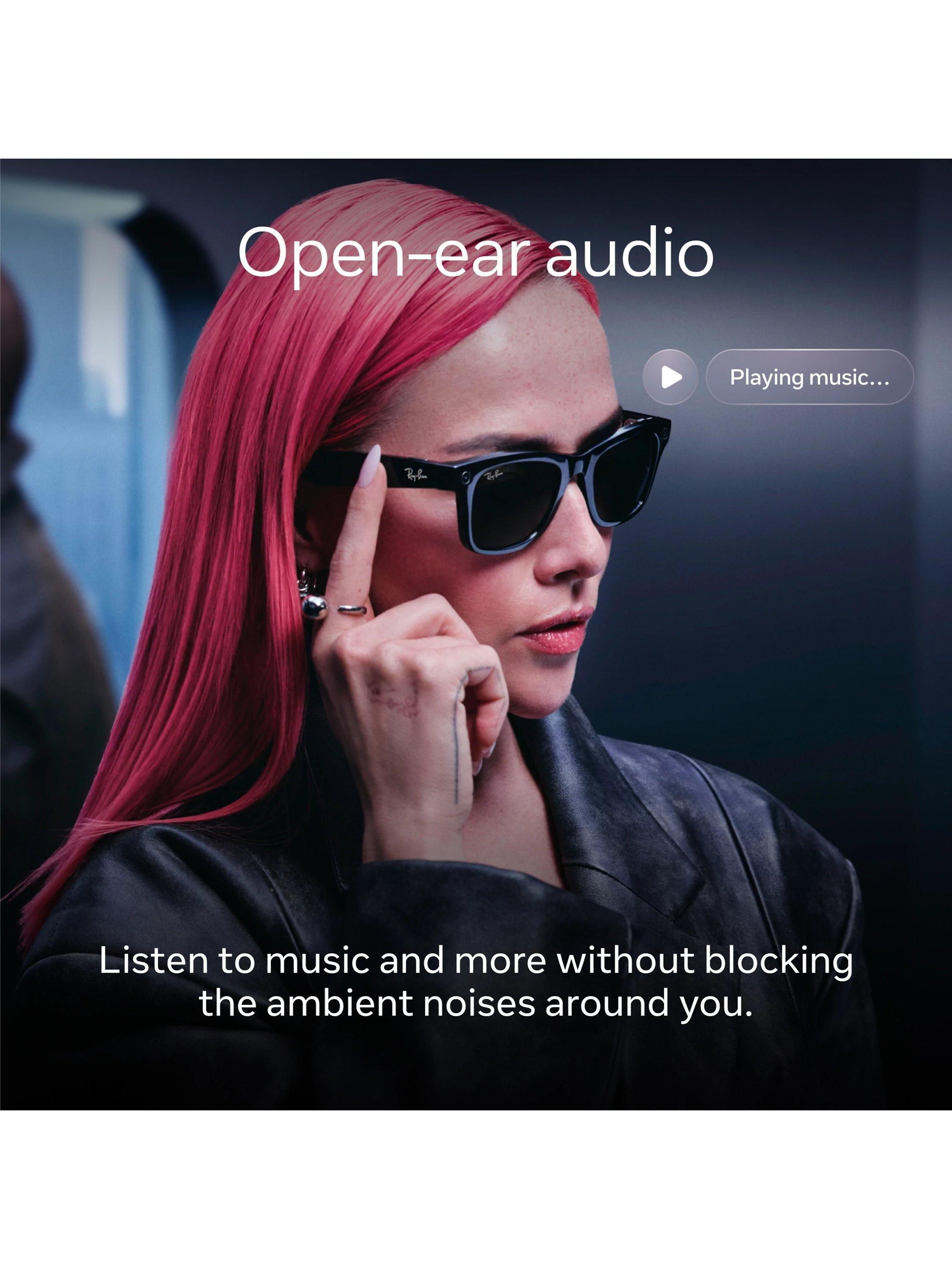 - Listen to music and more with discreet open-ear speakers that deliver rich, quality audio without blocking out conversations or the ambient noises around you