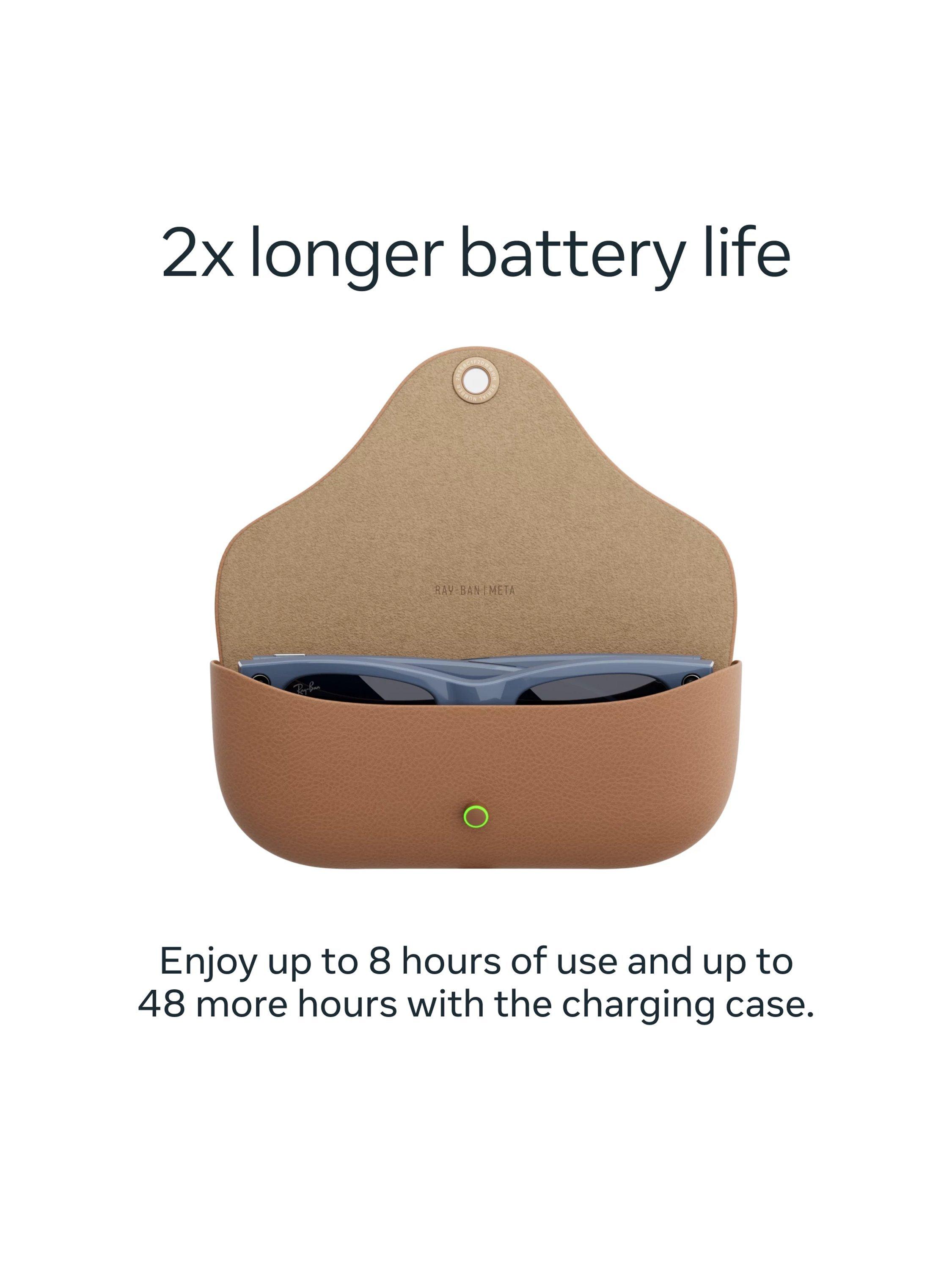 - On a full charge, glasses can last up to eight hours with moderate use. Plus, each pair comes with a charging case that provides up to 48 hours of charging on-the-go*