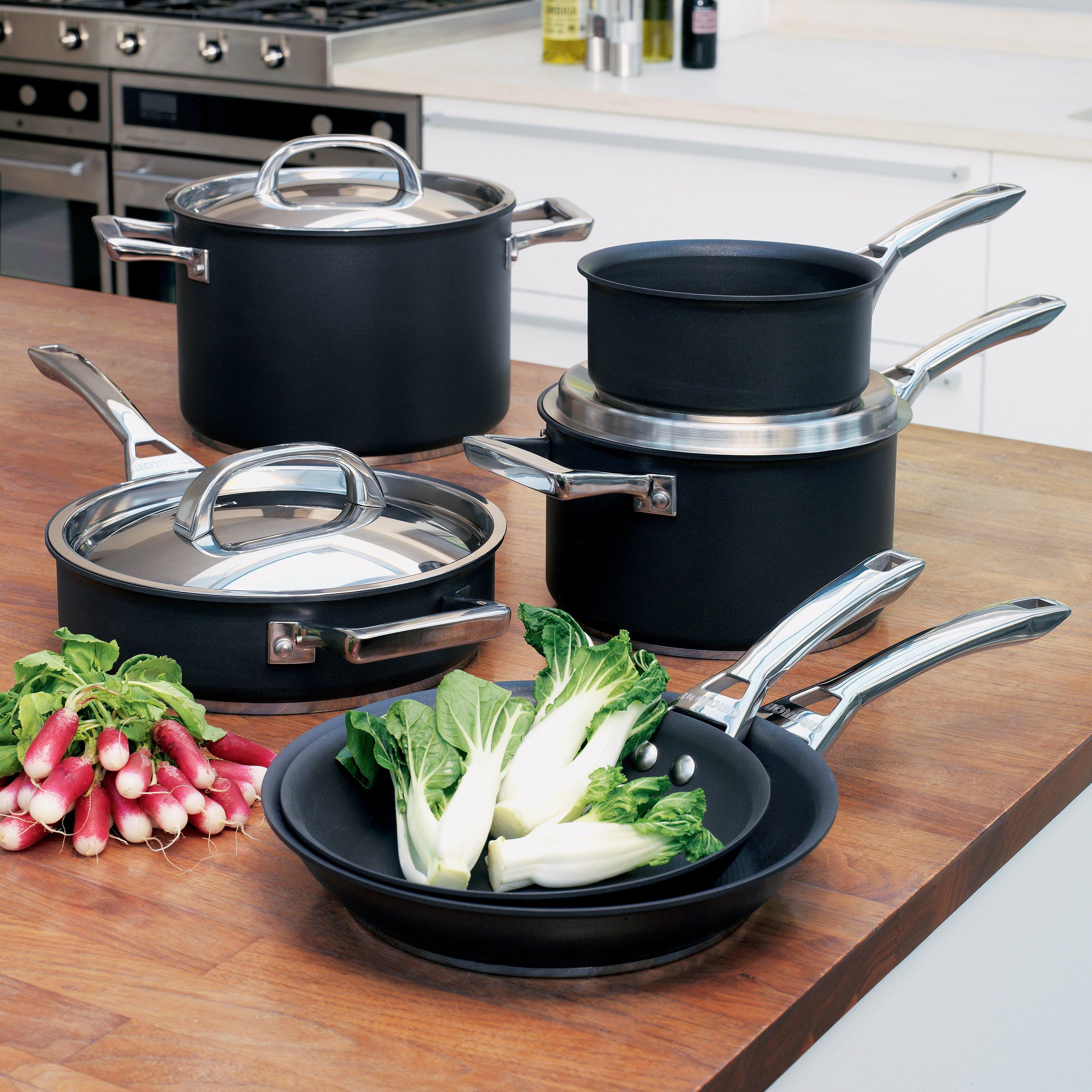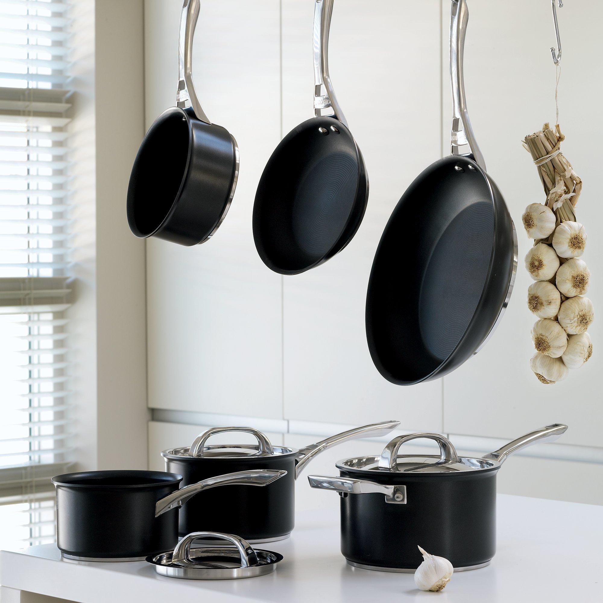 Meyer Infinite Circulon features the Total® hard anodized food release system. This combines a unique "hi-low" (raised circles and grooves) base and a state of the art non-stick formula.