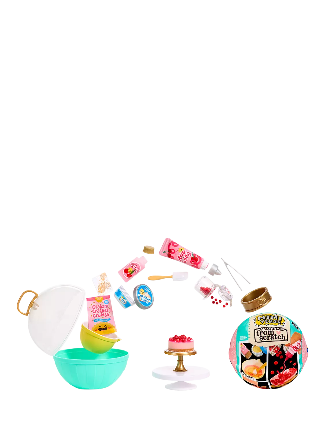 There's more to collect than just your finished mini! From mini mixing bowls and rolling pins to cake mix boxes and pasta packaging, build your own mini kitchen with unique ingredients and accessories. There are countless unique Make It Mini™ From Scratch ingredients, packaging, and kitchen accessories to collect and build your very own mini masterpiece collection.
