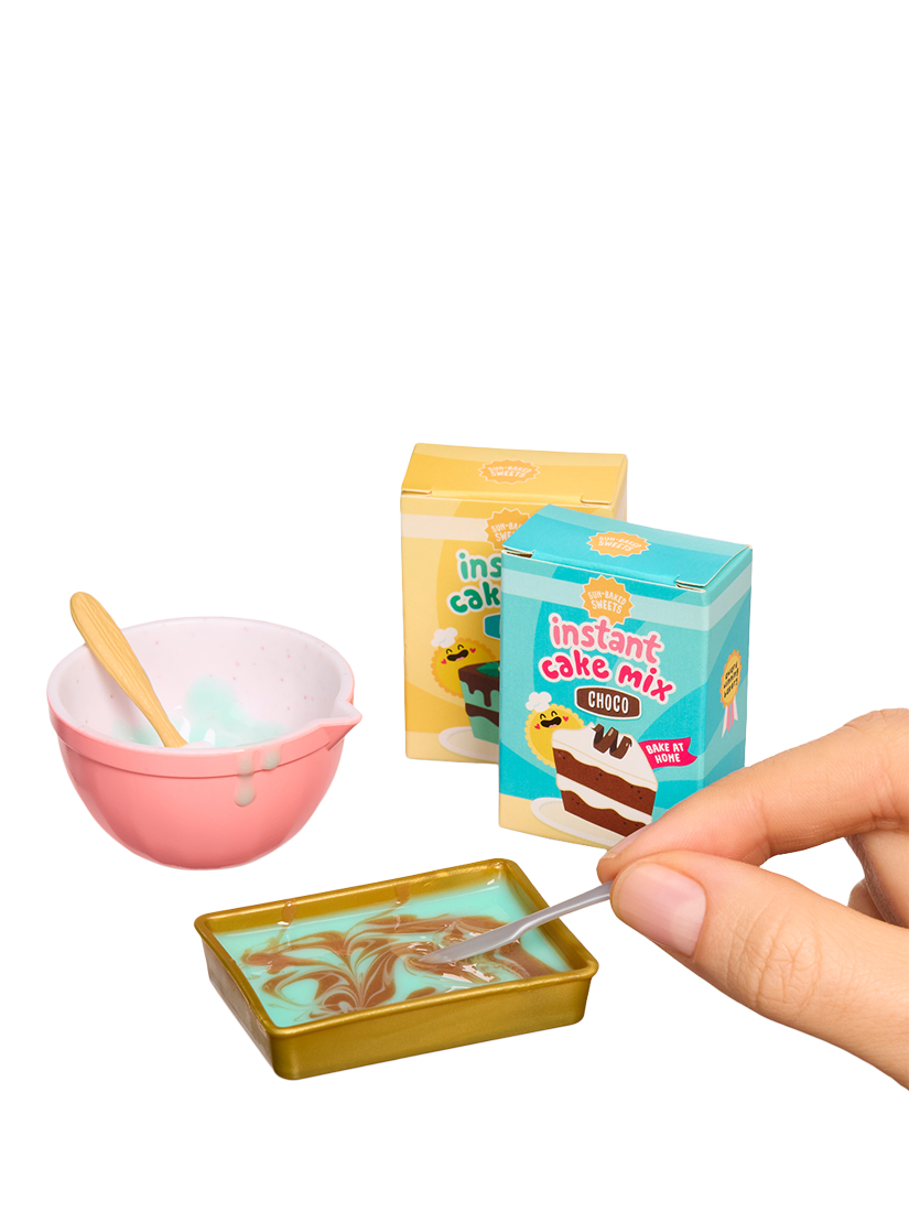 Bring baking fun into every step! Mix, layer, roll, and build your mini goods using the included 'raw ingredients'. From shaping pasta dough to layering cheesecake, it's all about the process. Compare your ingredients with the included collector's guide to see which mini you've received and follow the 'recipe' card on the back to make your creation.