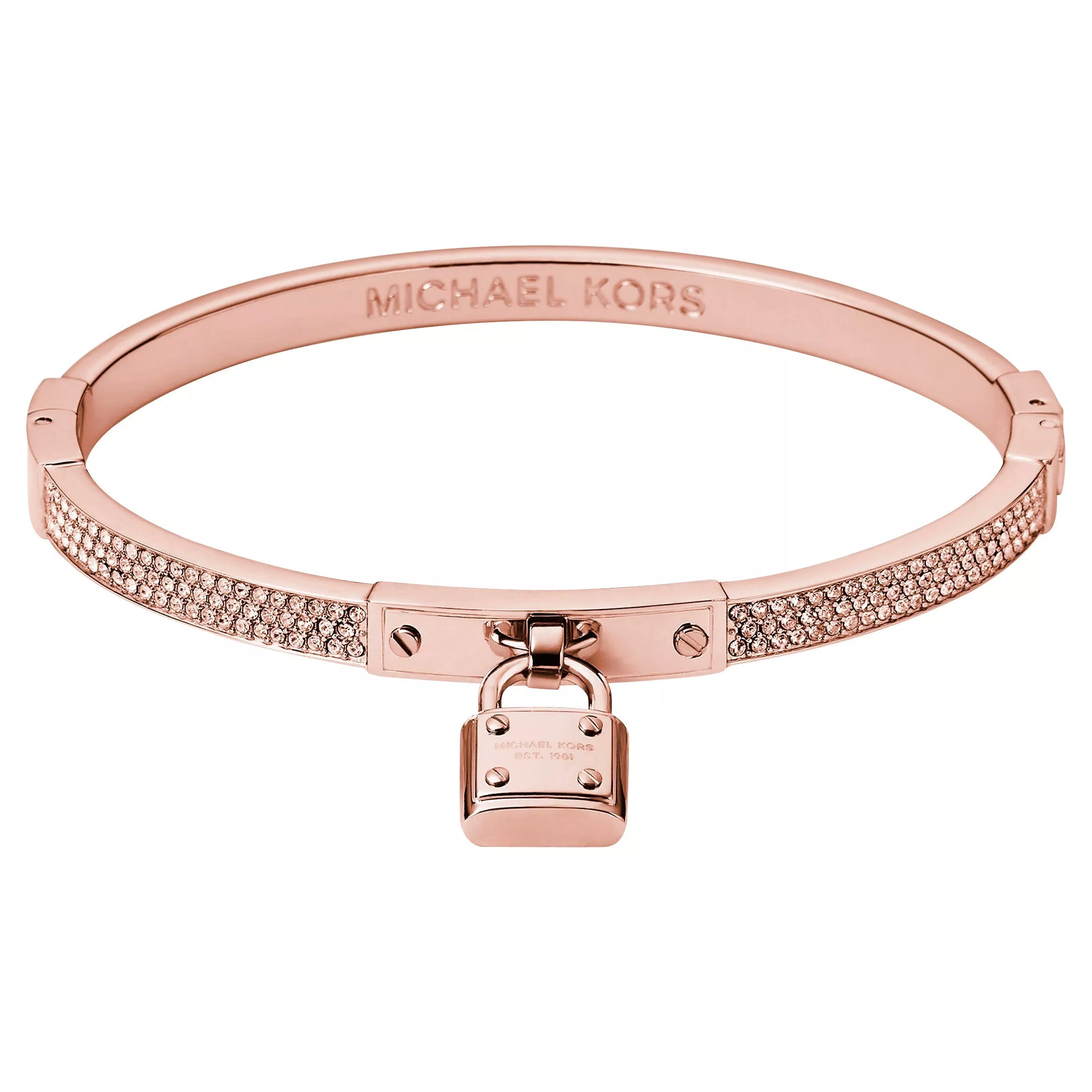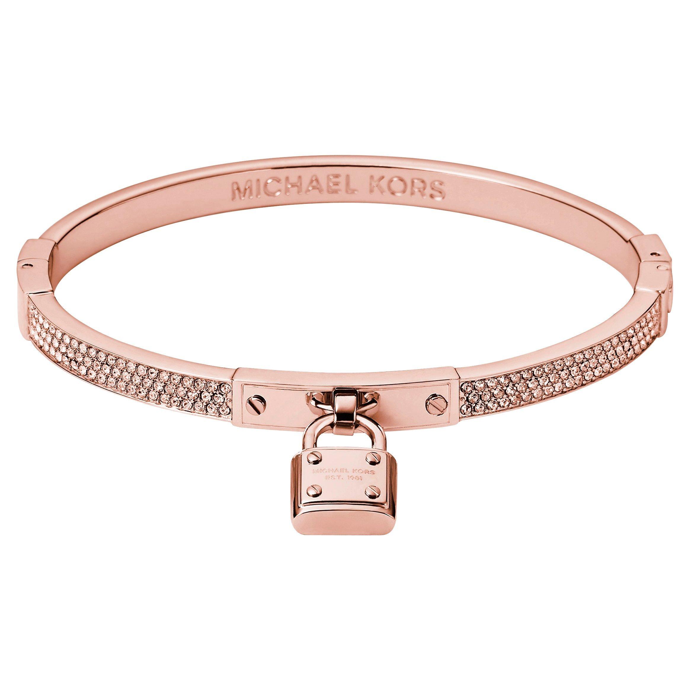 A hinged bangle from Michael Kors, finished in a luscious coating of rose gold. Set with sparkling pave glass crystals, the bangle sports a padlock detail at the front.