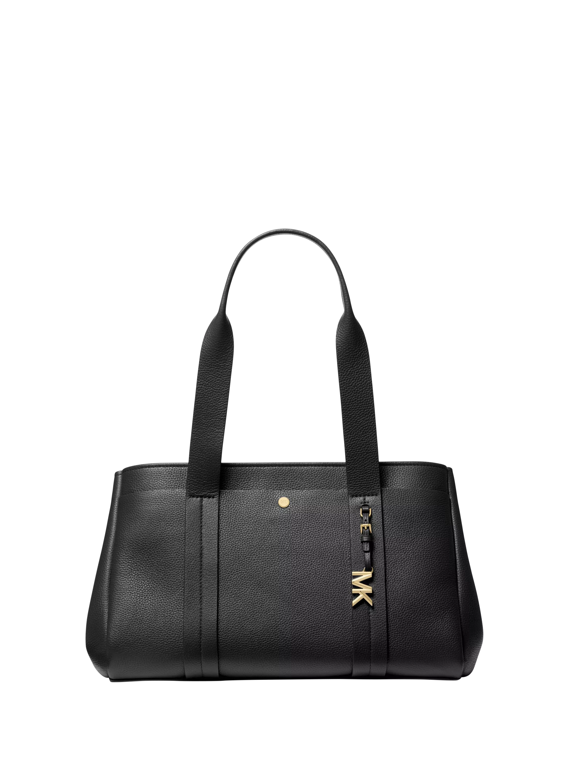 Rendered from pebbled leather, the Romee tote bag from Michael Kors is designed to carry all your essentials and even a few extra purchases along the way.