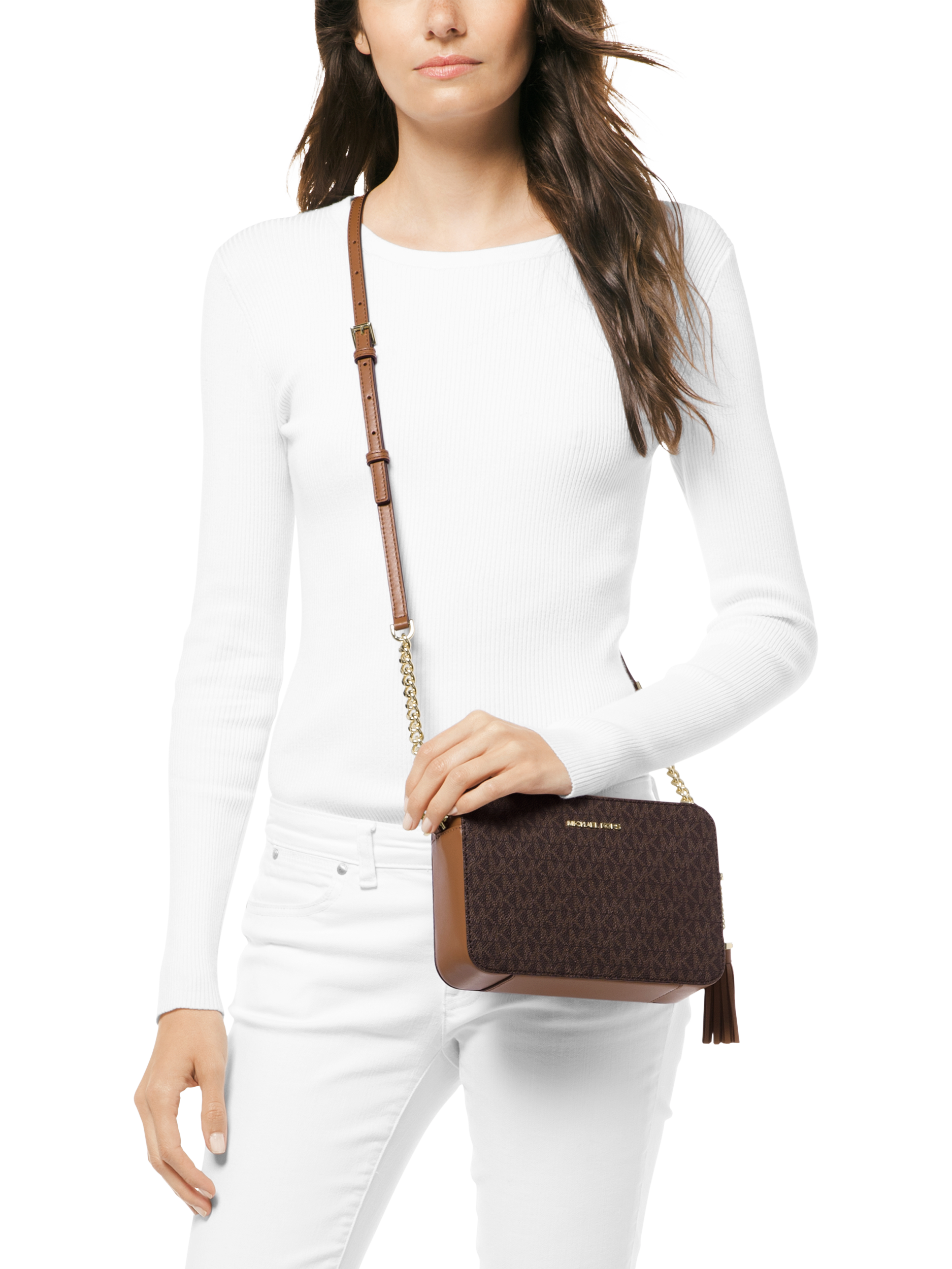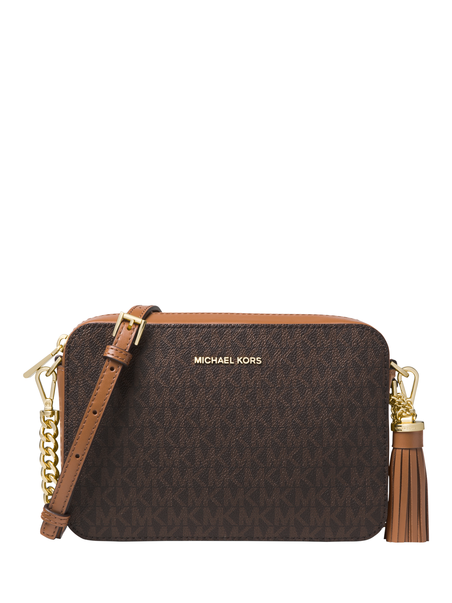 The distinctive cross body bag from MICHAEL Michael Kors offers a classic design with simple logo branding all over and two-tone panels. The main compartment secures with a zip fastening and opens to reveal a central pouch, while the adjustable chain and leather strap offers hands-free convenience.