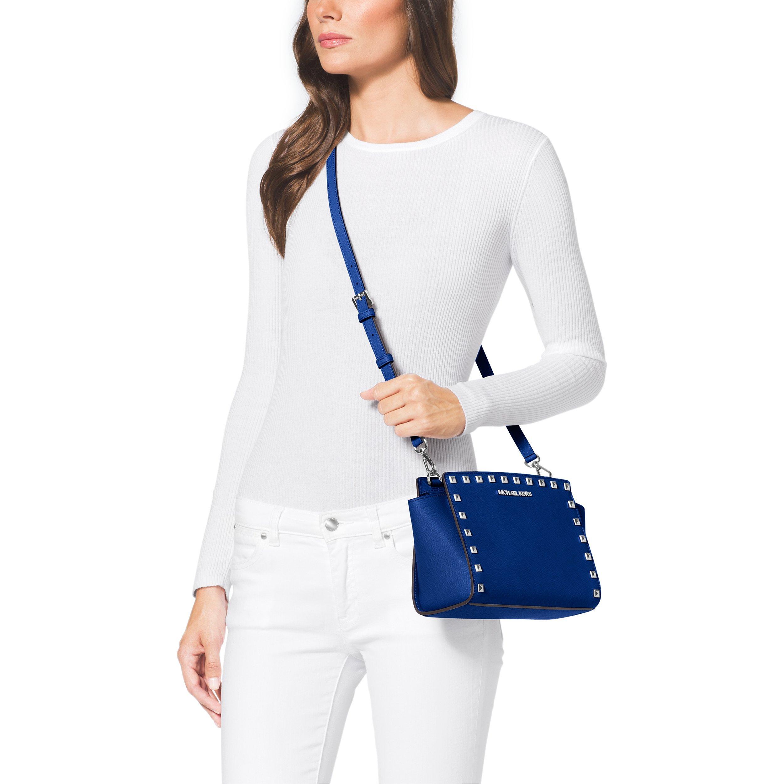 MICHAEL Michael KorsSelma Stud Medium Leather Messenger Bag, Blue