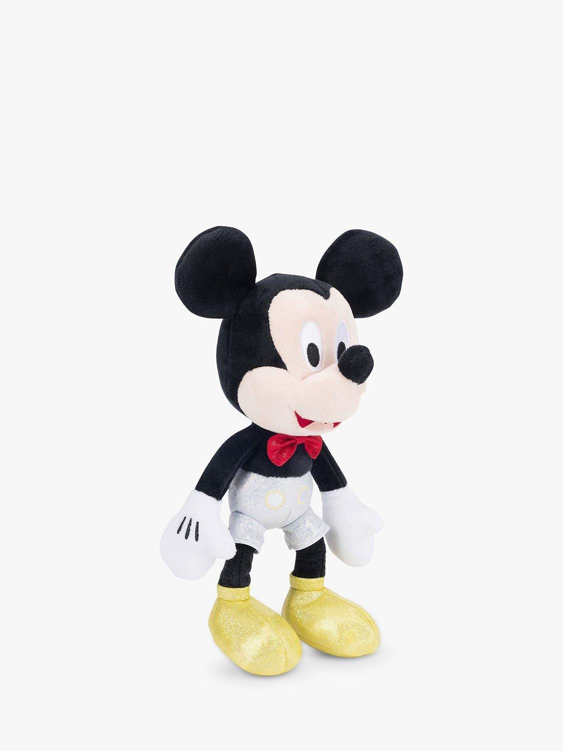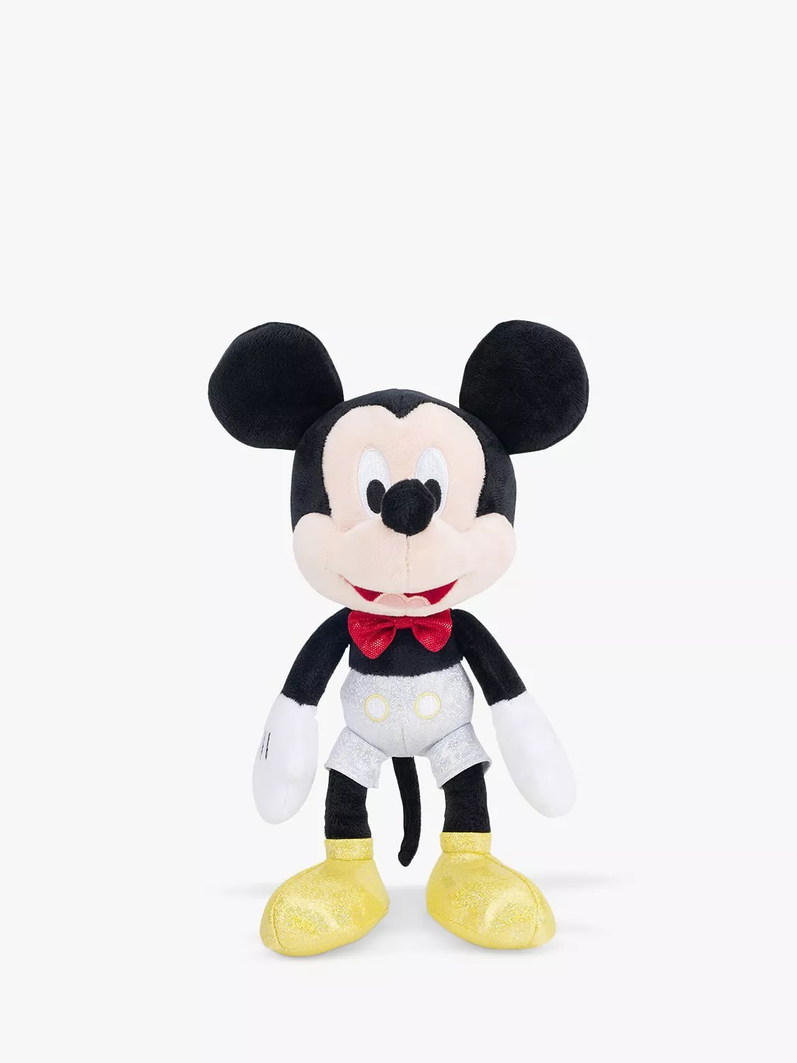 This plushie celebrates 100 years of Disney, with Mickey's attire changed to sparkly gold shoes and silver shorts.