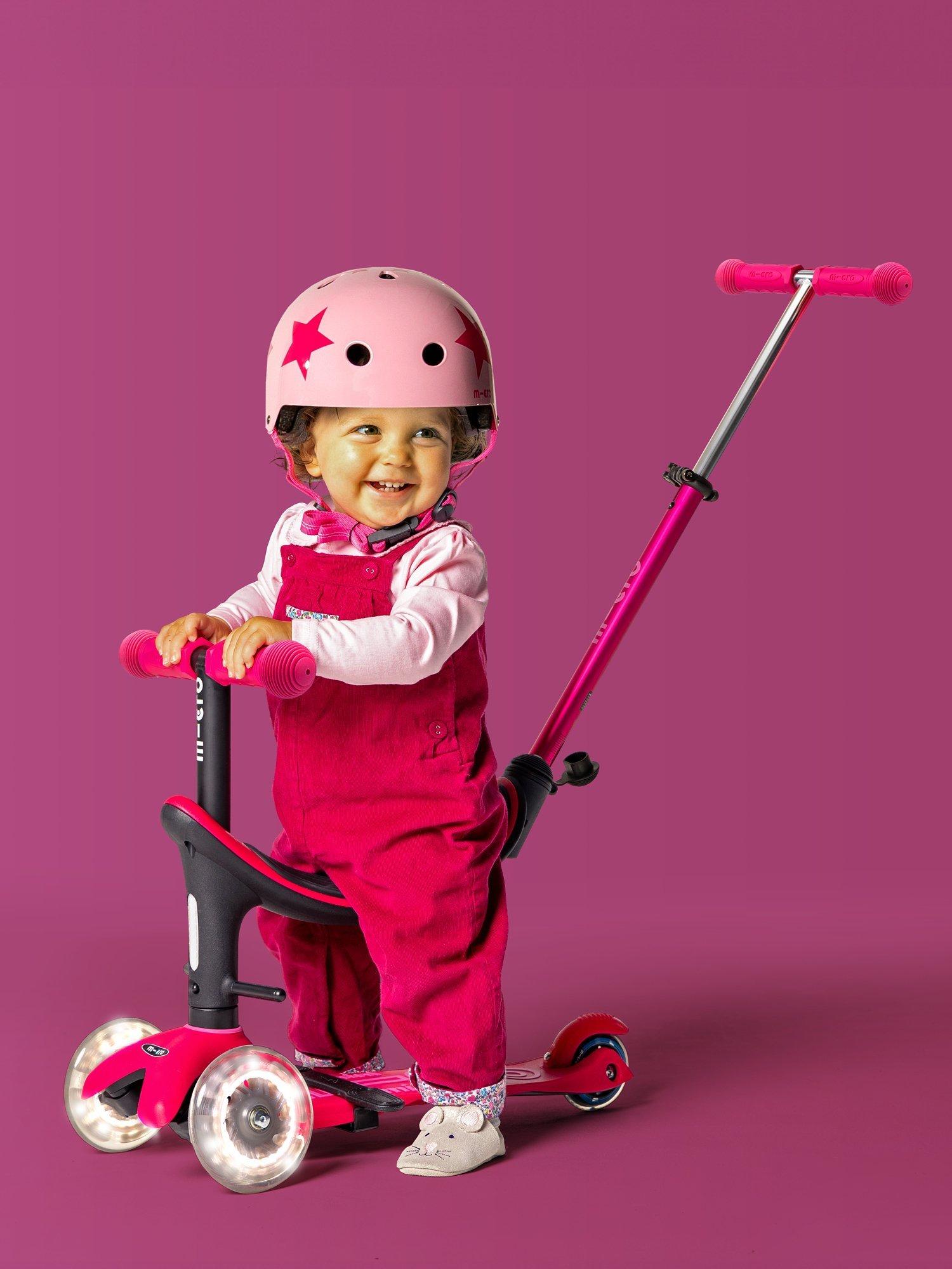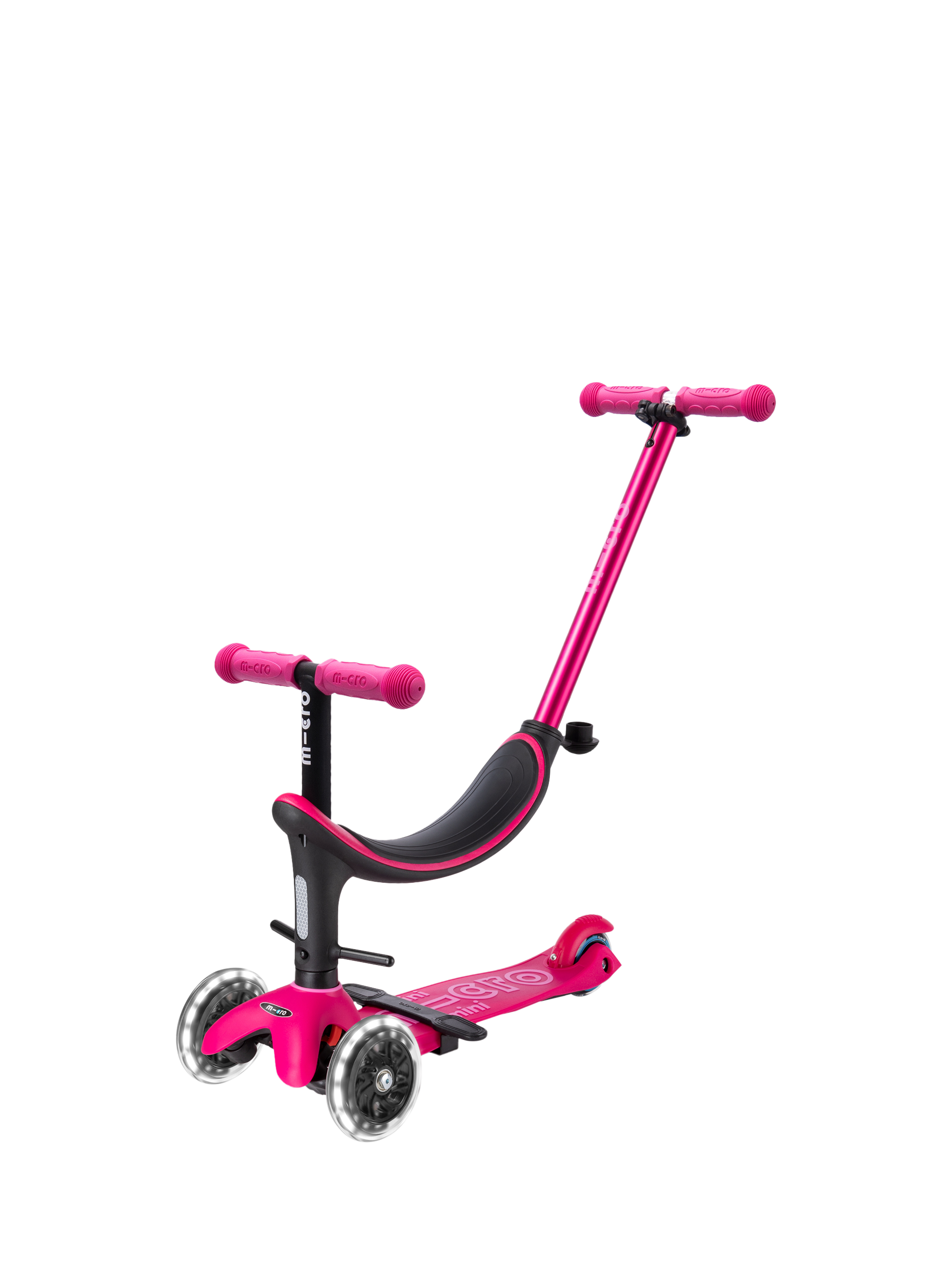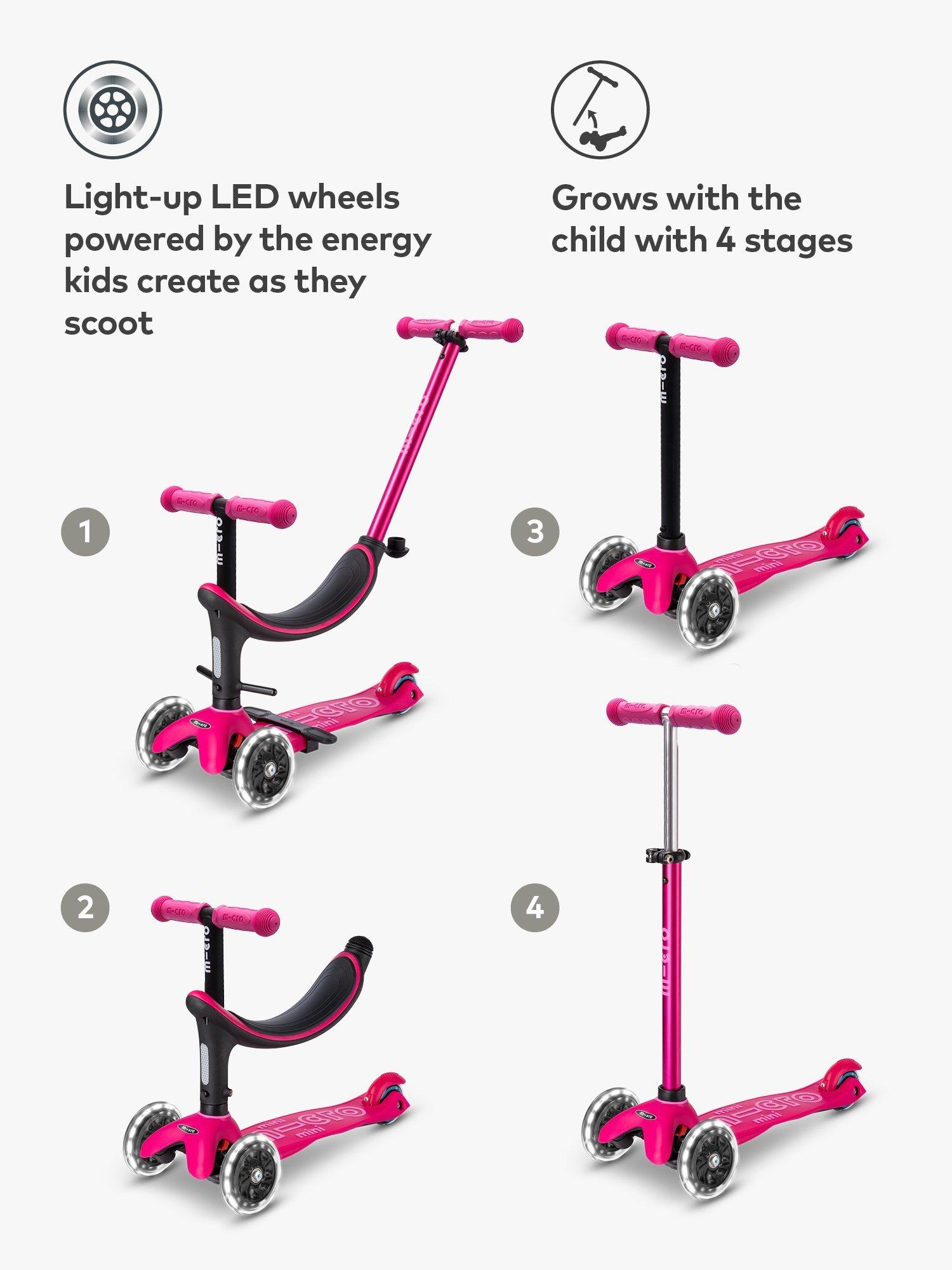 The Mini Micro Push Along is designed to withstand years and thousands of adventures, ensuring your child's safety and your peace of mind. The four stages of the Mini Push Along LED Wheels Scooter are:
