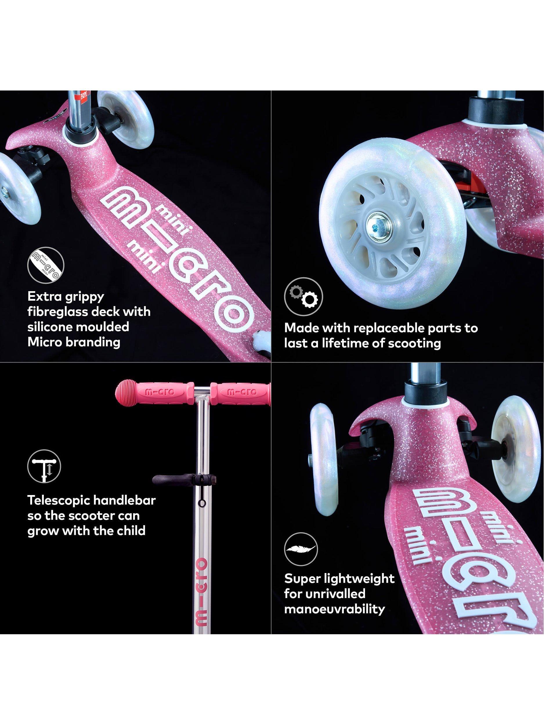 - Built to last, the Mini Glitter Deluxe Scooter can be passed on to younger siblings and friends