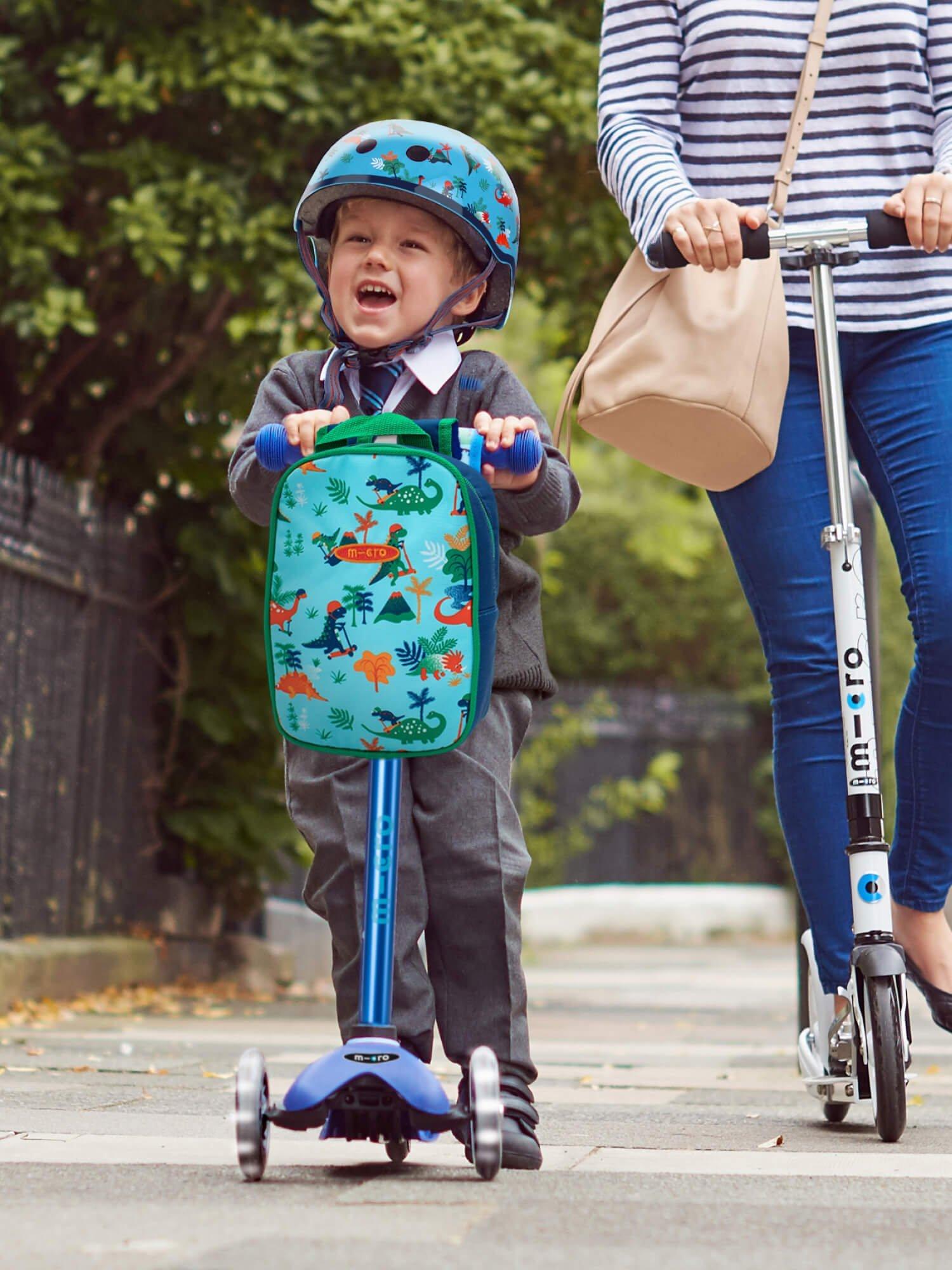 The integrated rear light, which cleverly doubles as a sizing dial, ensures children are visible when out and about. Clever air vents let heat escape, allowing for cool heads always. A protective chin pad for added protection also helps to prevent any pinching. Complete with stylish prints, luxurious inner padding, replacement parts and the brand's worry-free Micro guarantee. Happy heads wear Micro helmets.