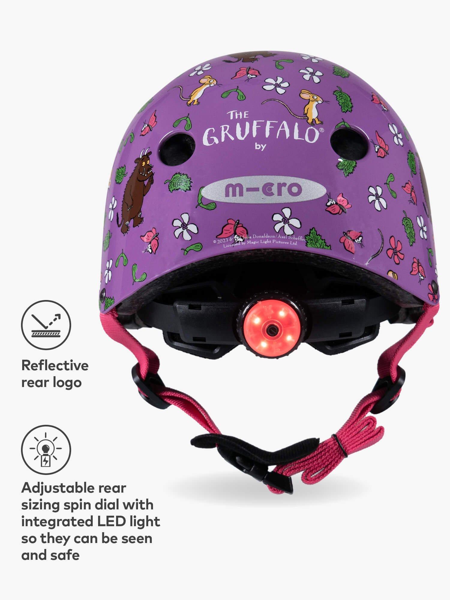 The integrated rear light, which cleverly doubles as a sizing dial, ensures children are visible when out and about. Clever air vents let heat escape, allowing for cool heads always. A protective chin pad for added protection also helps to prevent any pinching. Complete with stylish prints, luxurious inner padding, replacement parts and the brand's worry-free Micro guarantee. Happy heads wear Micro helmets.
