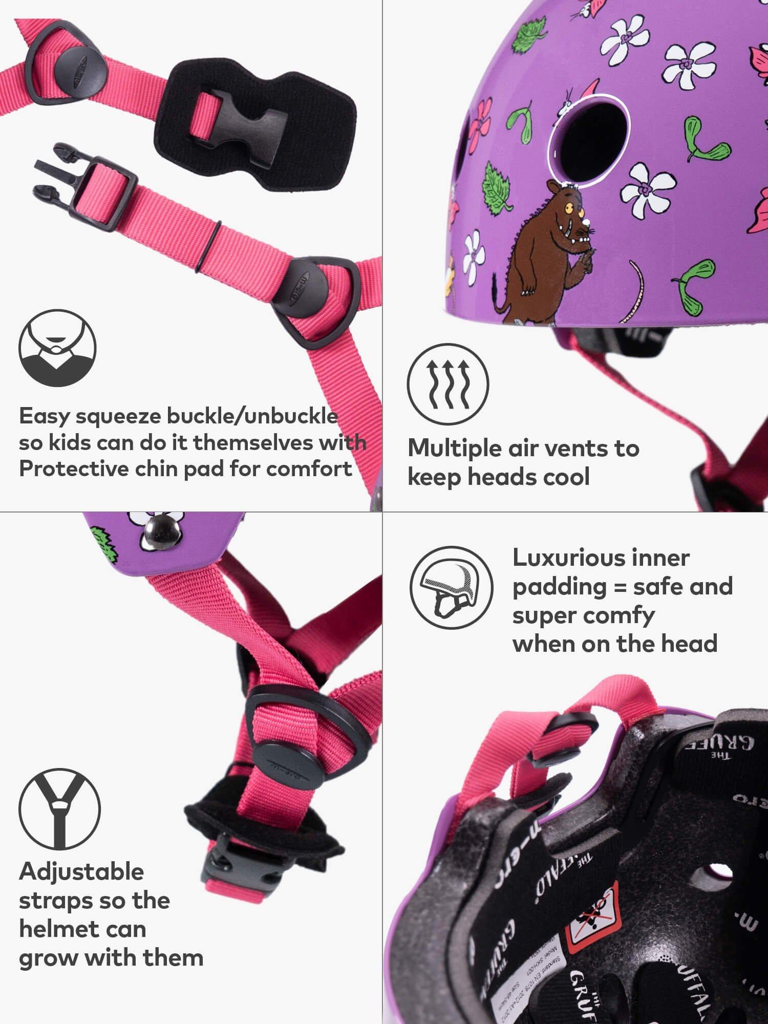 Micro Scooters believe every scooting or cycling adventure should be a safe one. Fuss-free helmet wearing starts with good design. So, their Micro helmets are packed with the latest technology to make safe simple. The brand's easy squeeze buckle/unbuckle helps little fingers fasten their helmet independently. The adjustable side locking dividers make it easy to get the right fit first time.