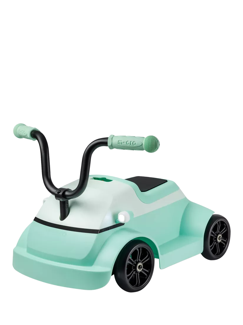 It also moves in a way that's different to most ride-ons. Kids themselves power the Mini Microlino. They turn the handlebars from side to side, and that gentle movement makes the vehicle glide forward. There's no need for pedals or pushing. It's smooth, easy and fun, helping children naturally build balance, coordination and motor skills with every ride.