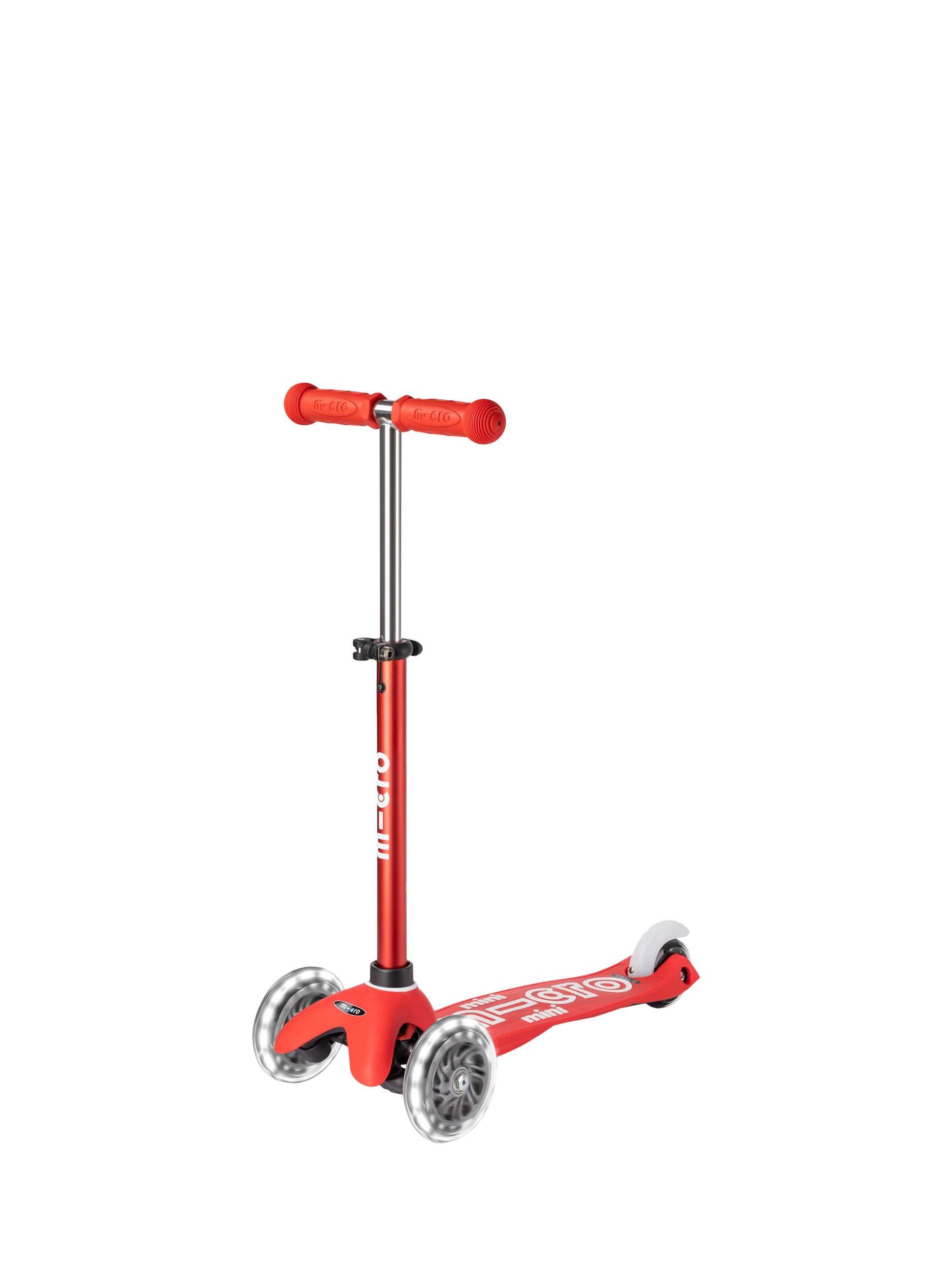 Simple fold. Streamlined shape. Handy kickstand. The Mini Deluxe is as portable as they come. Weighing only 2kg with a lightweight aluminium frame and 120mm wheels, it ticks all the boxes to make life on wheels a daily habit. An adjustable handlebar varying from 49-68cm guarantees total comfort on short and long rides for children up to 110cm tall. The innovative braking system responds to the slightest touch, while soft-but-strong toxin-free rubber handle grips ensure the Mini Deluxe LED is the most refined and durable pre-school scooter in town.