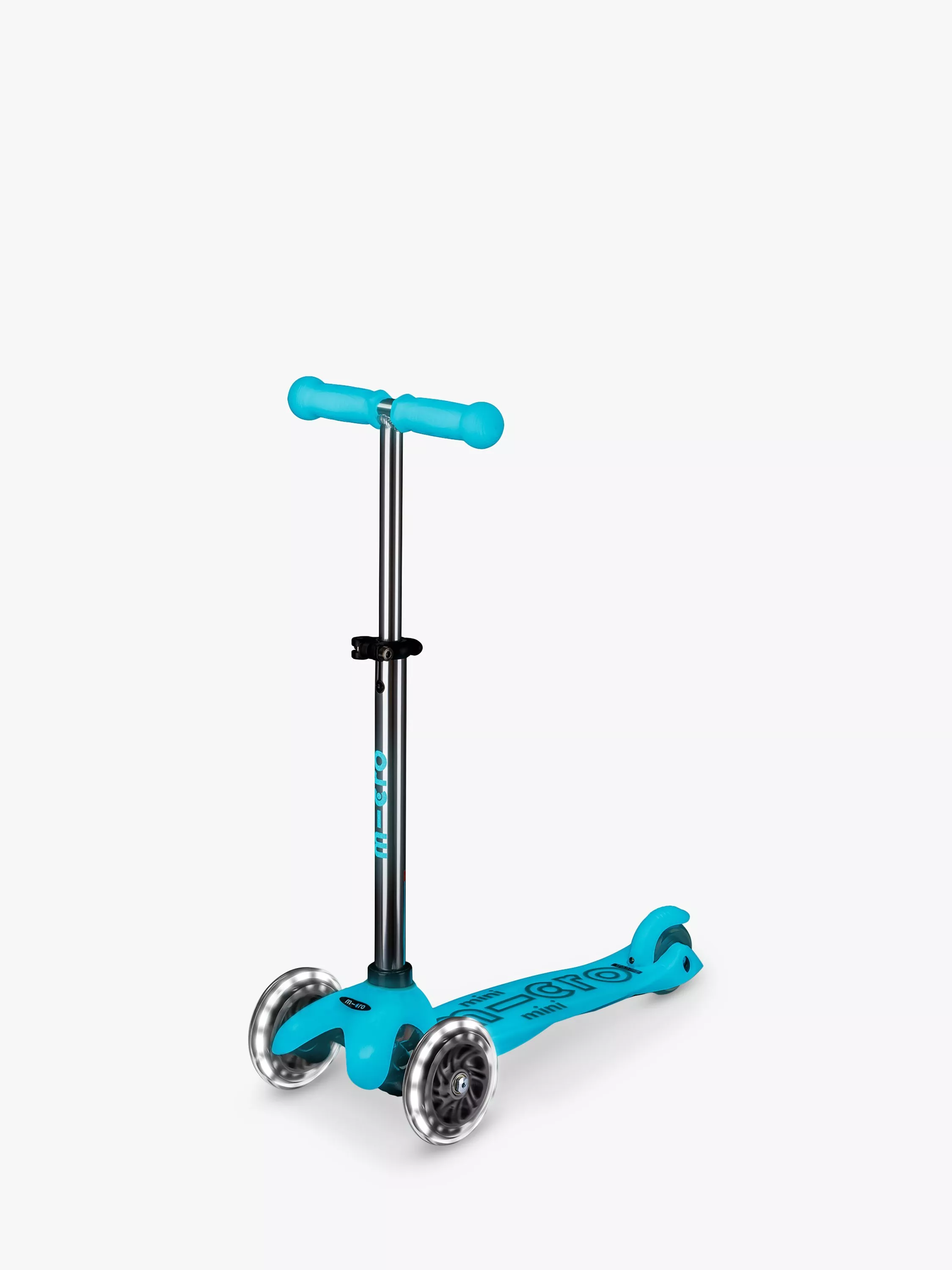 The adjustable handlebar and increased 50kg weight limit mean mini explorers can now start earlier and keep going longer. The Mini Micro Glow has a footplate made from flexible PAGF (reinforced fibreglass) and a double-injected anti-slip silicone logo to help keep children's feet firmly planted , even in wet weather. With our innovative braking system that responds to the slightest touch, thermoplastic, toxin-free rubber handle grips that are soft yet strong and polyurethane, puncture-free wheels for endless adventures. The Mini Micro Glow is the most glow-rious and durable pre-school scooter in town.