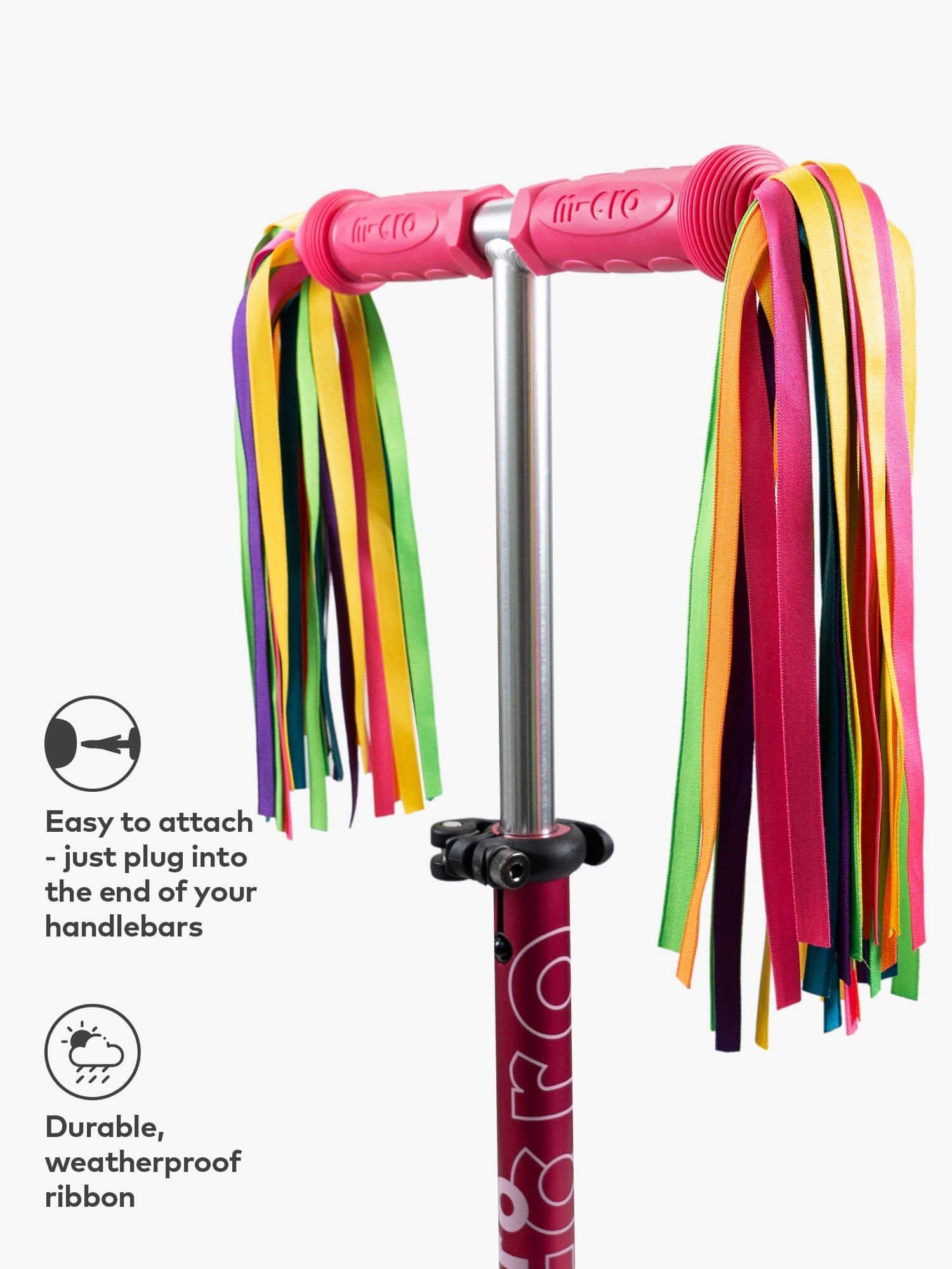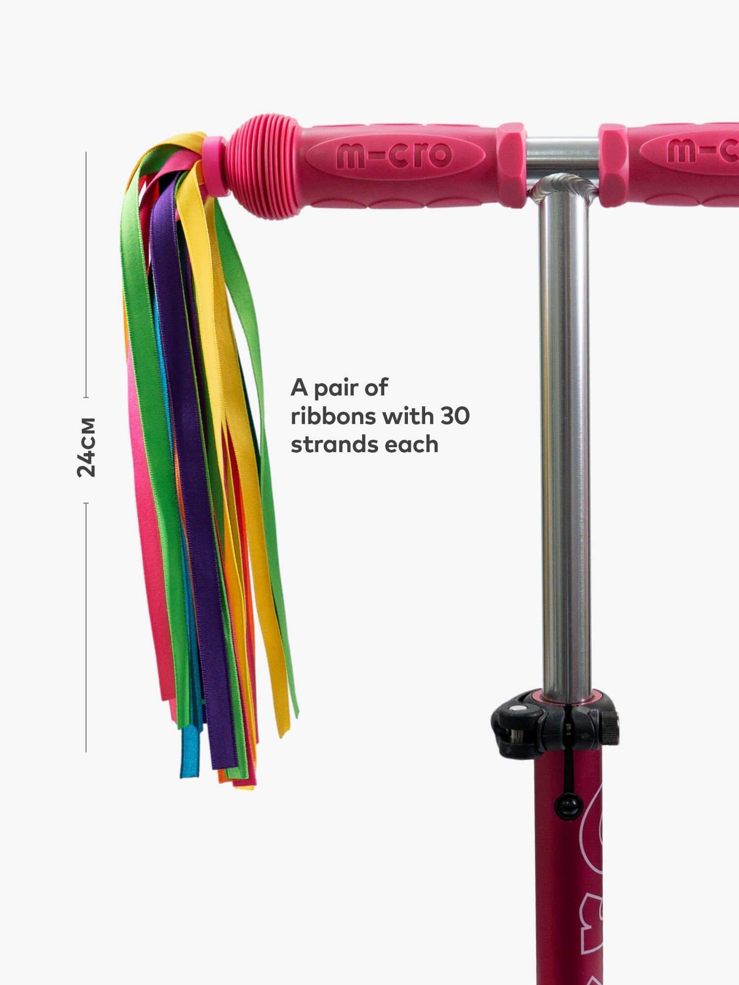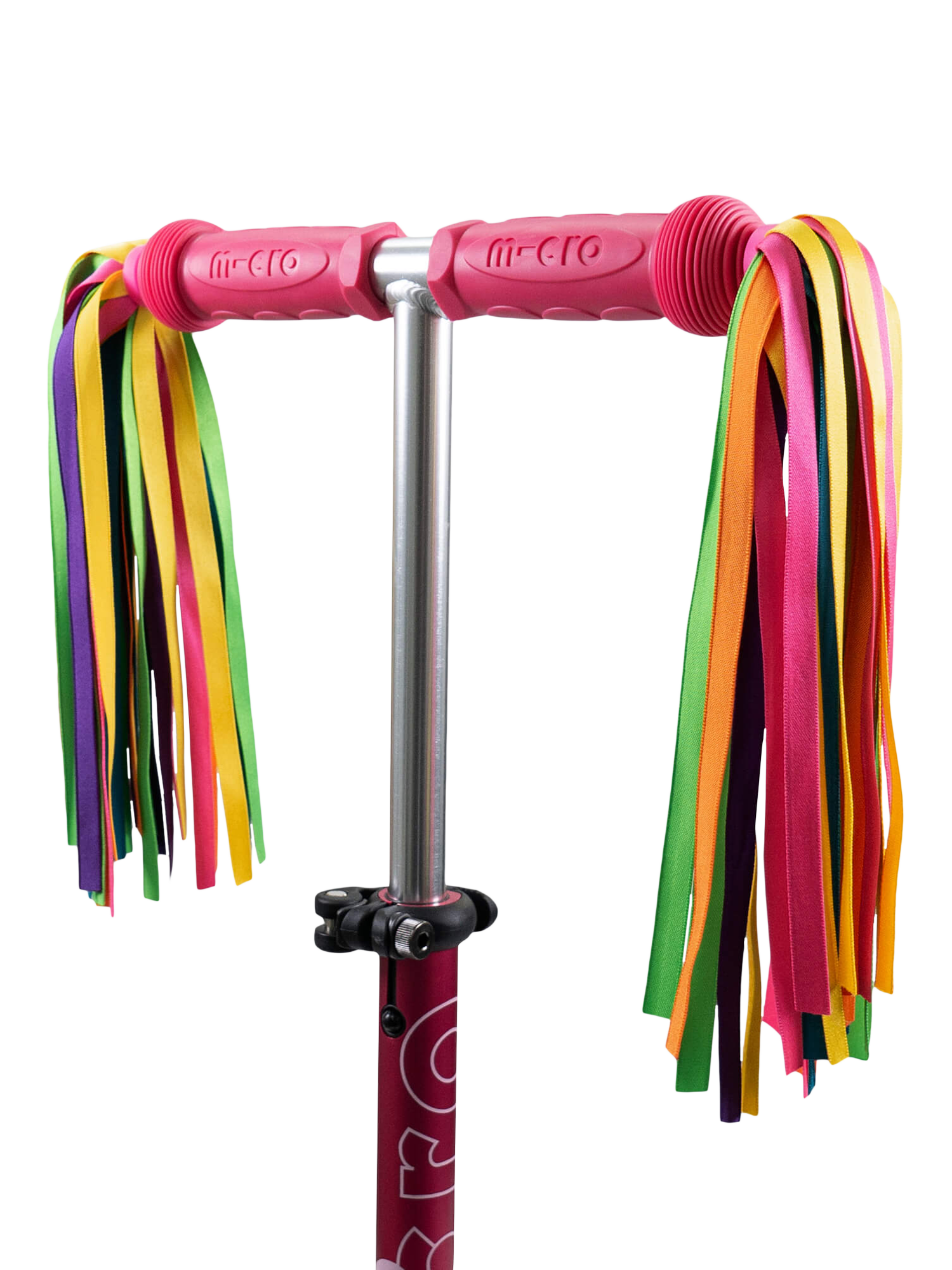 This accessory is perfect for kids on the go. Every 23cm long ribbon strand blows in the wind as you cruise the pavement and is made from a robust fabric that resists fray and endures any weather. Each pack contains 30 ribbons that easily plug into the end of the handlebars. Packed in an FSC-certified recycled box, the ribbons make a great gift for an effortless scooter style upgrade.