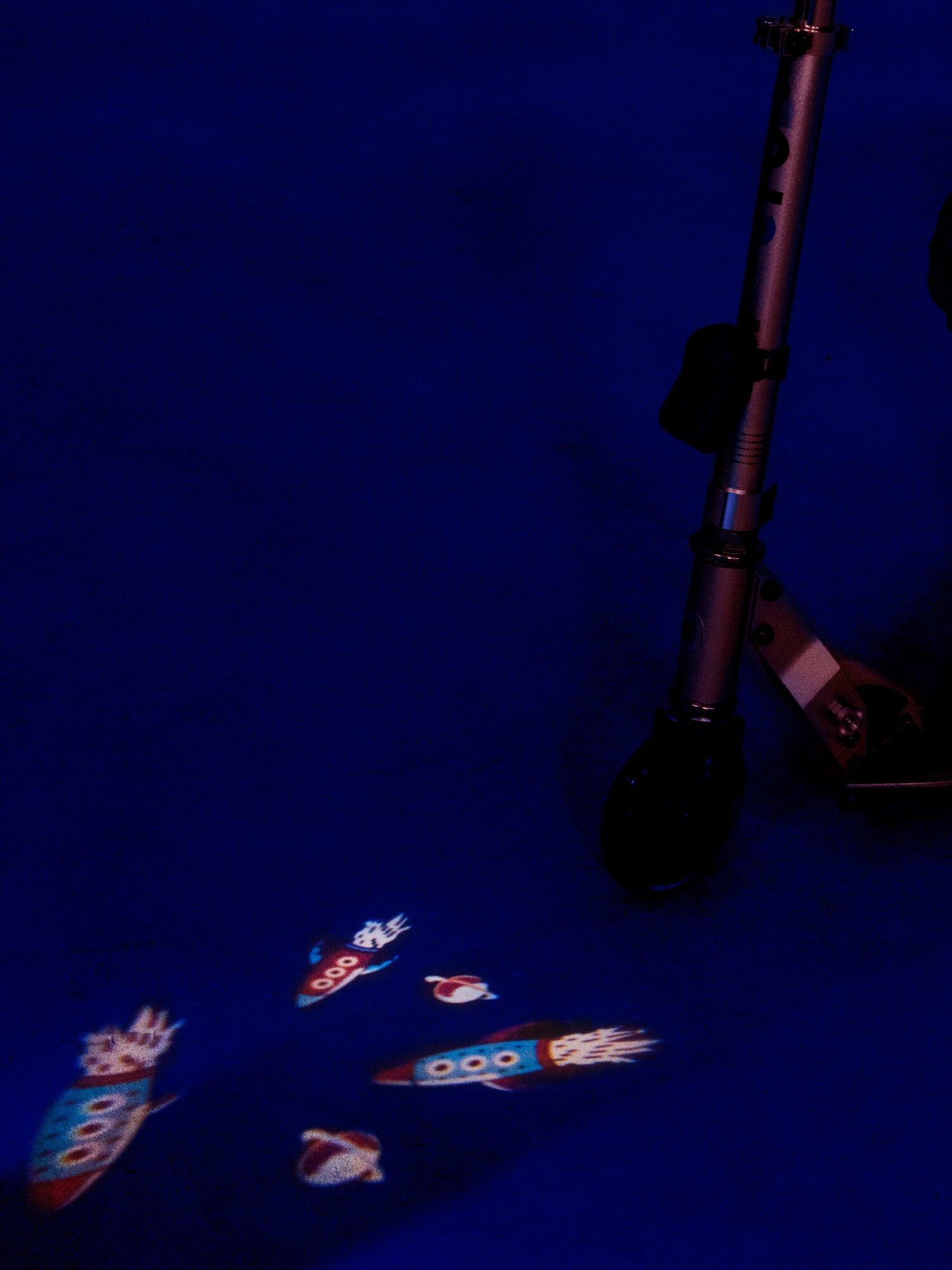 Projects a Rocket design on walls, floors, pavements and more. Can also be used as a handheld torch for fun indoors and out. Rechargeable and comes with a USB charging cable. 4 hours + run time. Suitable for use on all Micro scooters. This clever light attaches to any Micro scooter quickly and easily. Before you embark, press once, and a dazzling Unicorn print will appear on the pavement in front of you or on the walls and floors around you. Making for fun guiding light on every adventure.