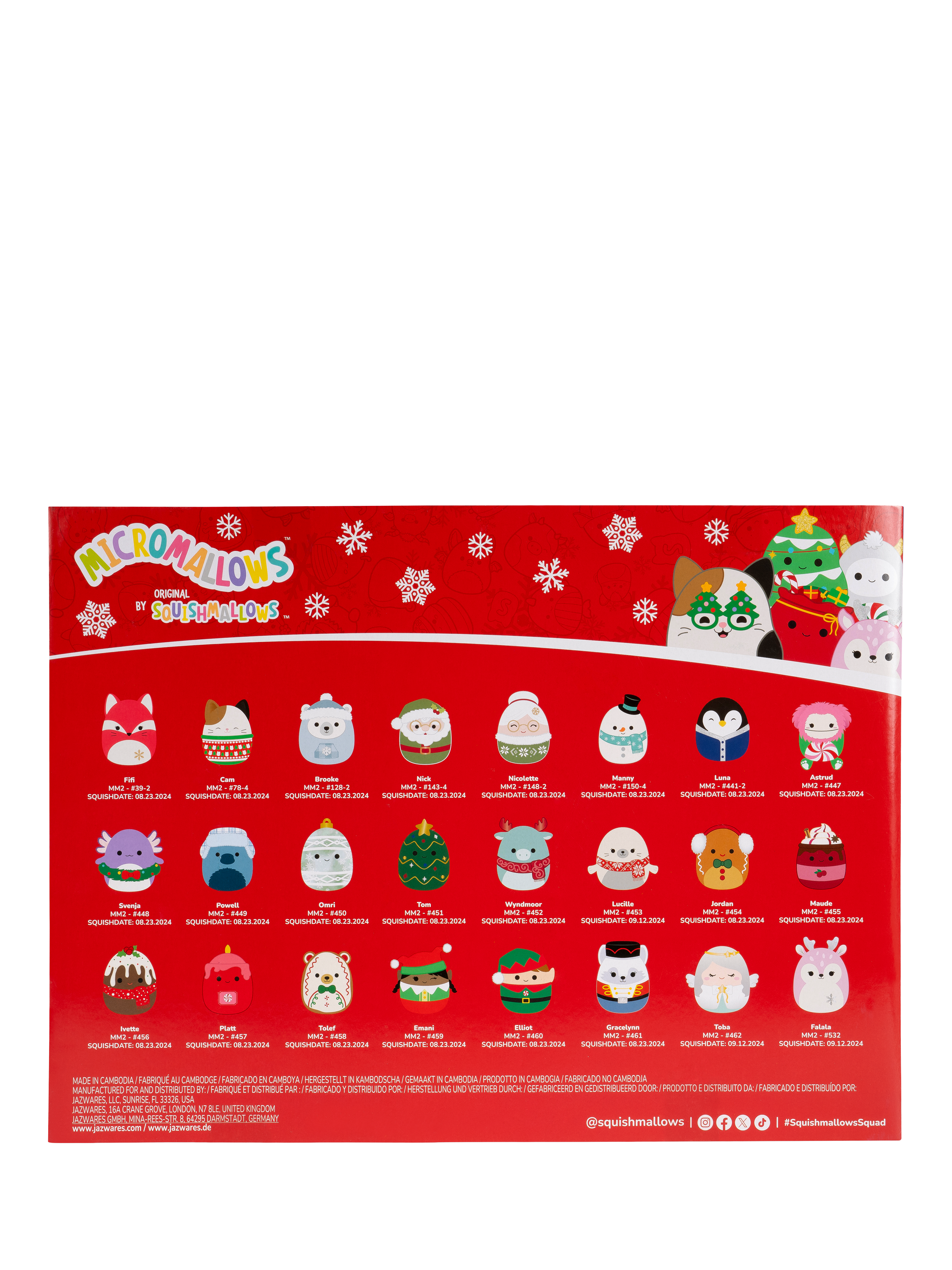 Micromallows are tiny but mighty! The 24-day Micromallows Advent Calendar features iconic Squishmallows styles in their smallest and most collectible form yet. Celebrate the countdown to Christmas with 24 festive favourites, including Brooke the Polar Bear, Manny the Snowman, and more! Only by Original Squishmallows. Join the Squad!