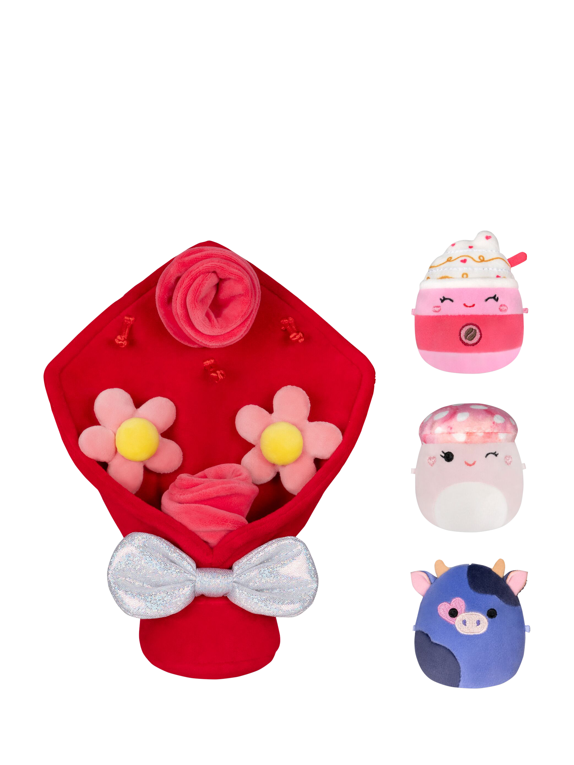 Micromallows are tiny but mighty! The Valentine's Day Bouquet features three soft, detachable micro plush Micromallows in their smallest size yet: Molly the Mushroom, Ingred the Cow and Beata the Latte, in a bouquet of plush flowers. Treat your loved one to a bouquet of 2.5-inch (6cm) Micromallows to display, swap or play. Official Squishmallows product: look for the official seal. Only by Original Squishmallows. Join the Squad!