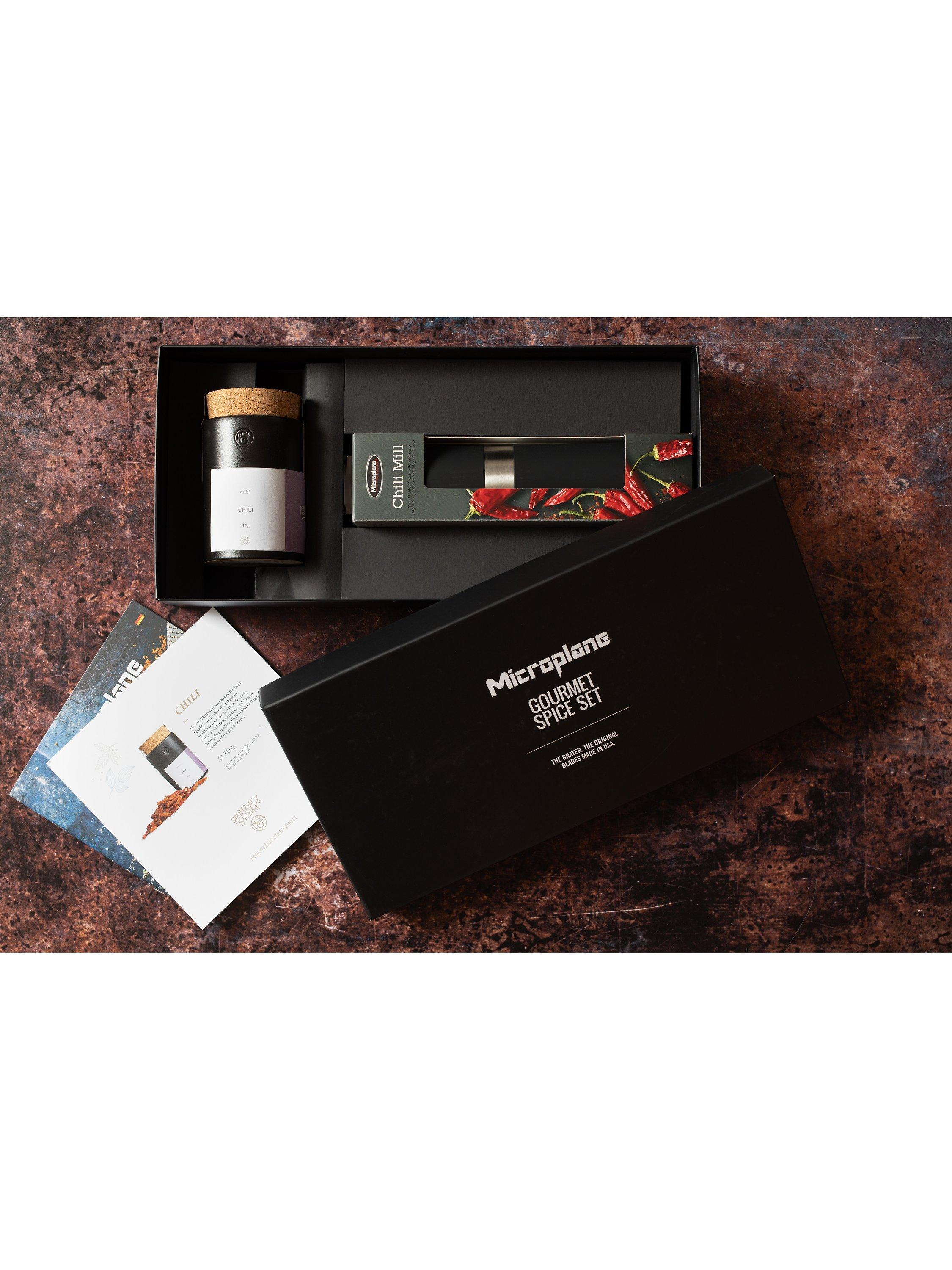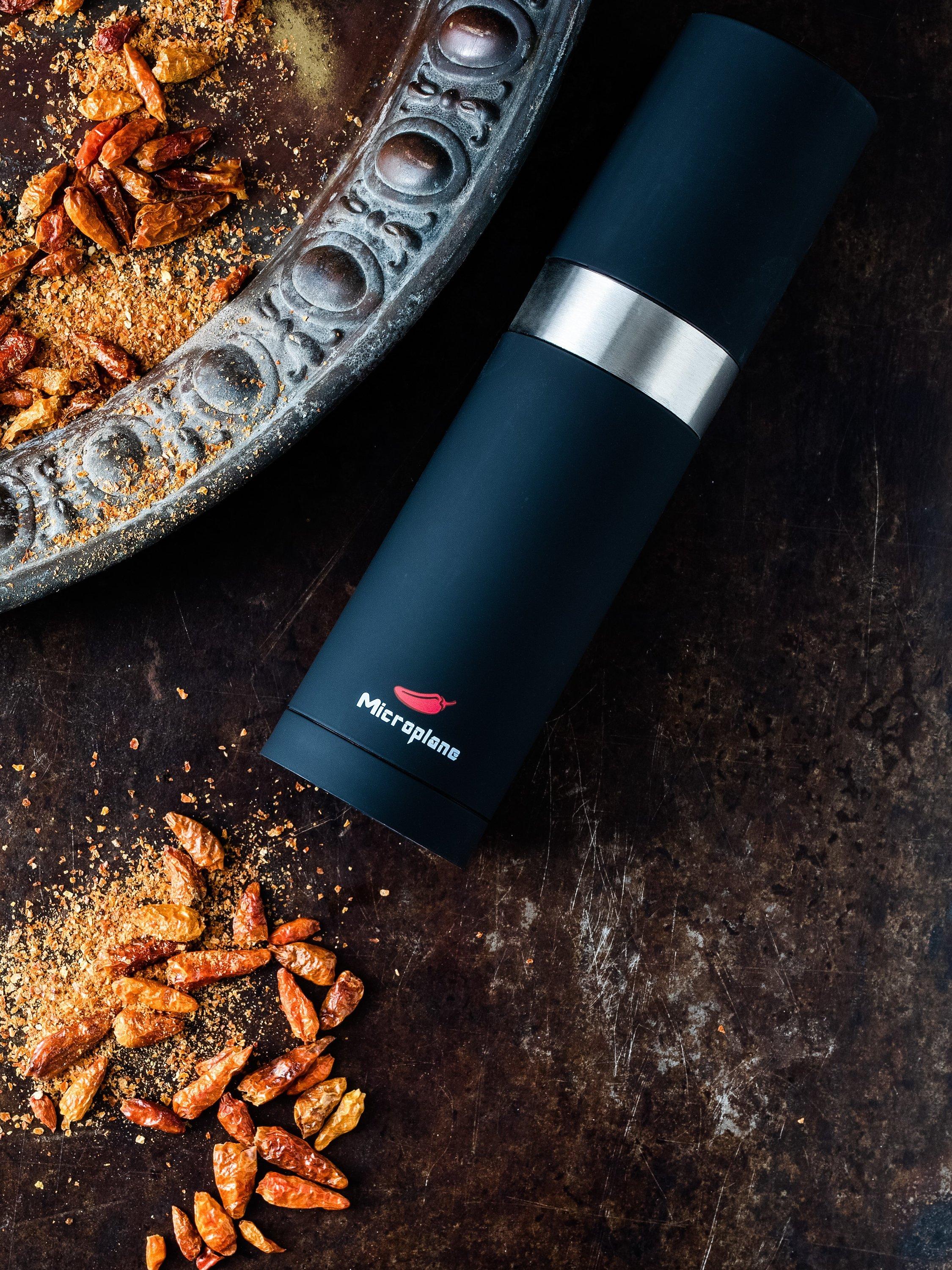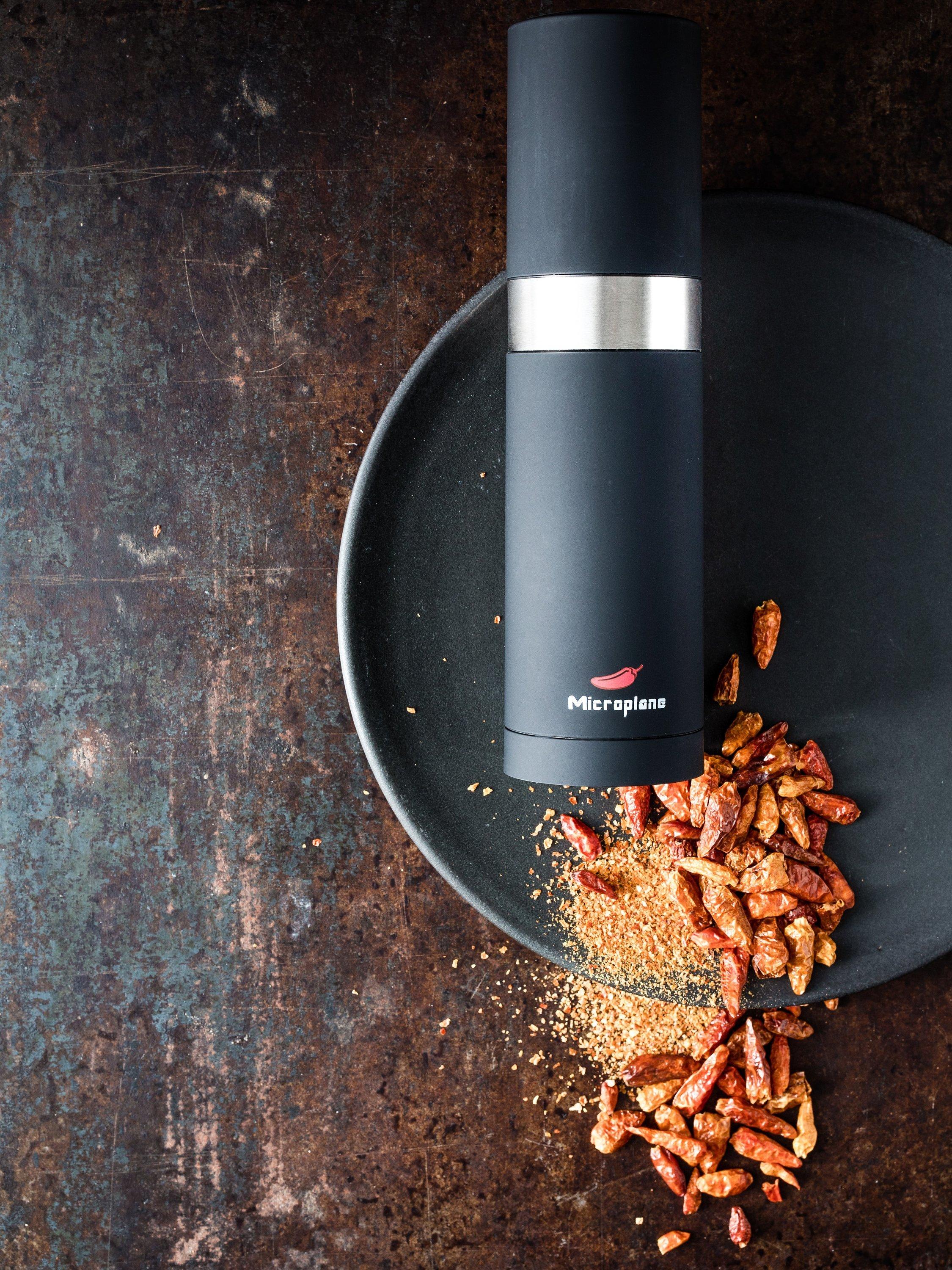 This chilli mill benefits from Microplane's signature, razor-sharp, photo-etched stainless steel blades for effortless grating and superior results. It grates the chillies evenly and precisely so the essential oils can develop optimally and taste is enhanced. Includes: Birdseye Chillies.