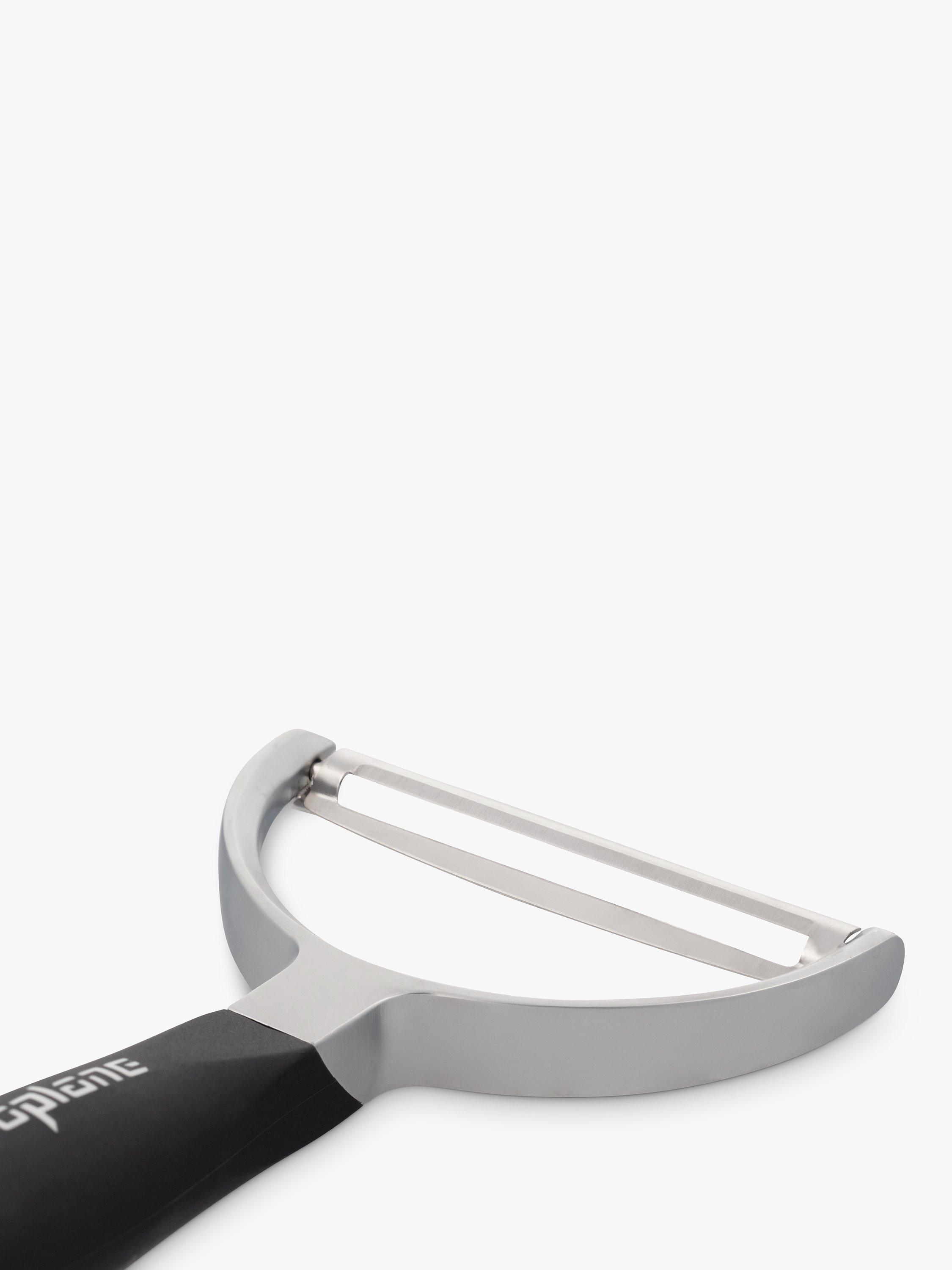 The swivelling stainless steel, ultra-sharp blade expertly follows the contour of longer fruits and vegetables to guarantee perfect results every time. The Y-shaped peeler design ensures an easy peeling flow. The soft-touch, non-slip, ergonomic handle suits all types of grips for comfortable and safe use.