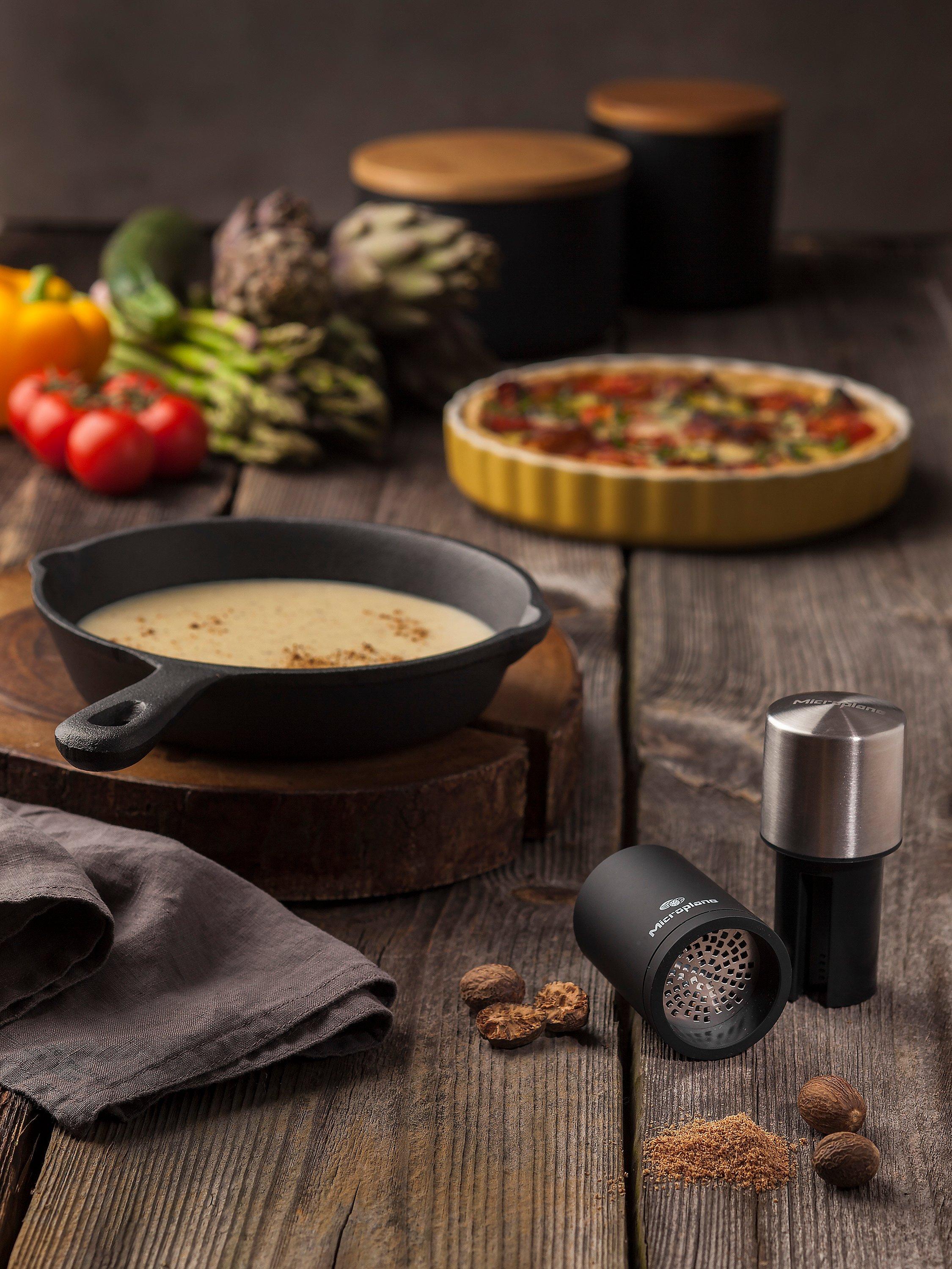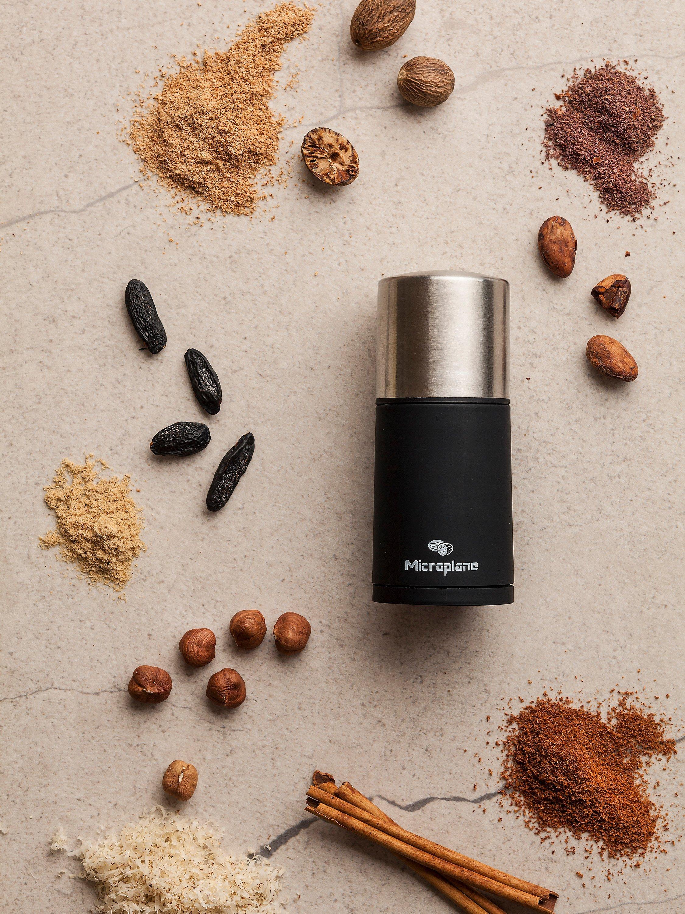Designed to grate and store hard spices such as nutmeg, cinnamon, Tonka beans, long black pepper, peppercorns and nuts. Made with Microplane's photo-etched, ultra-sharp stainless steel blades for effortless grating and superior results. Spices are precisely and finely cut for a full aroma.