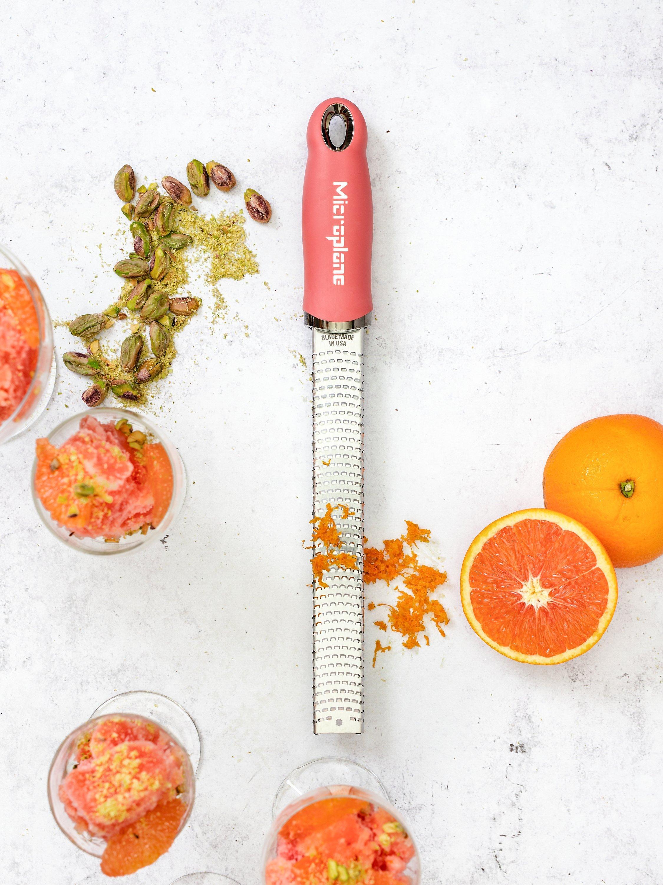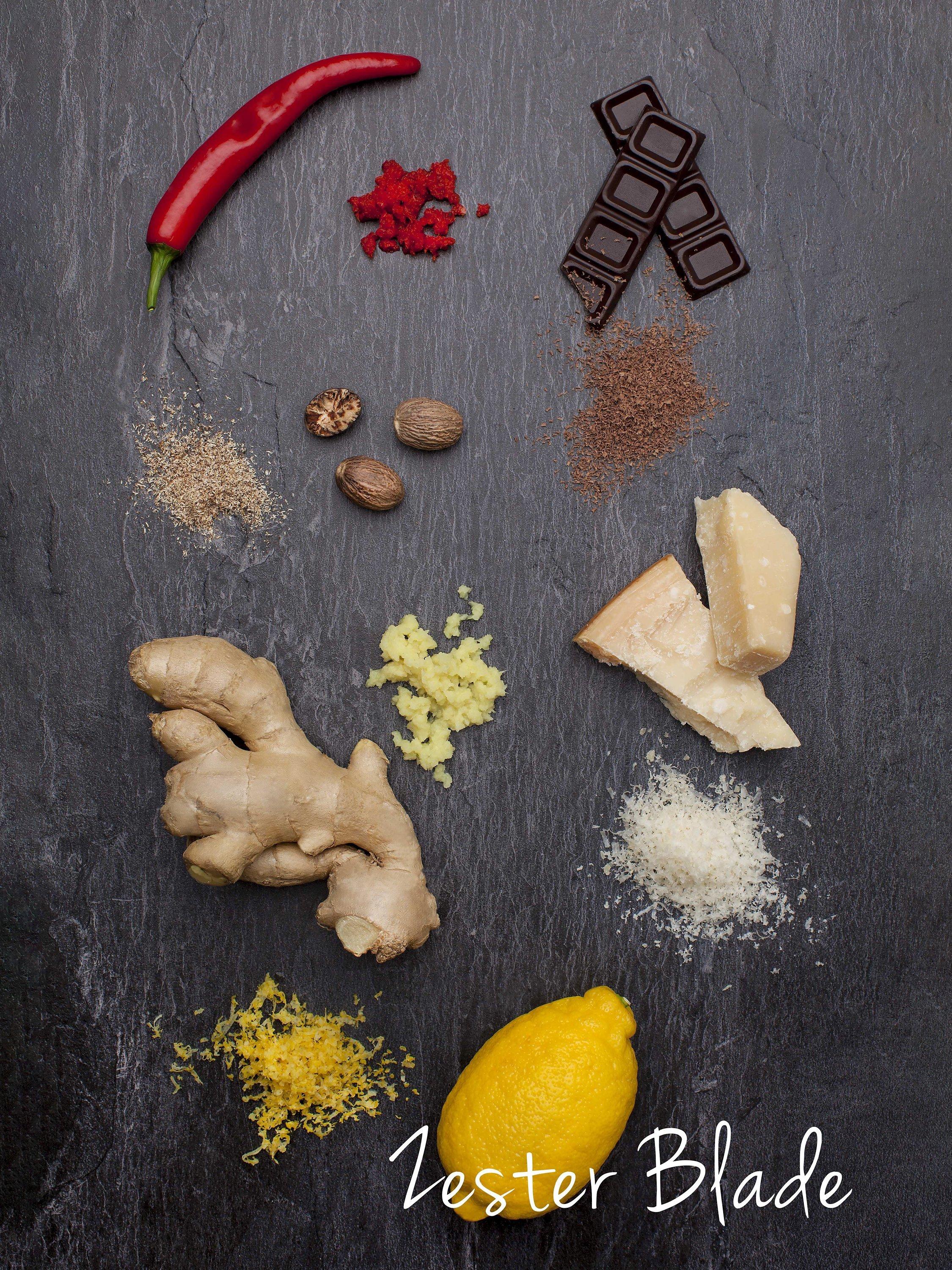 Elegantly grate hard cheeses into fine wisps with Microplane's Zester/Grater. Grate/zest chocolate, parmesan, citrus, coconut, ginger, garlic and more. Recommended for homemade vinaigrettes or topping cheese on your favourite pasta dish.