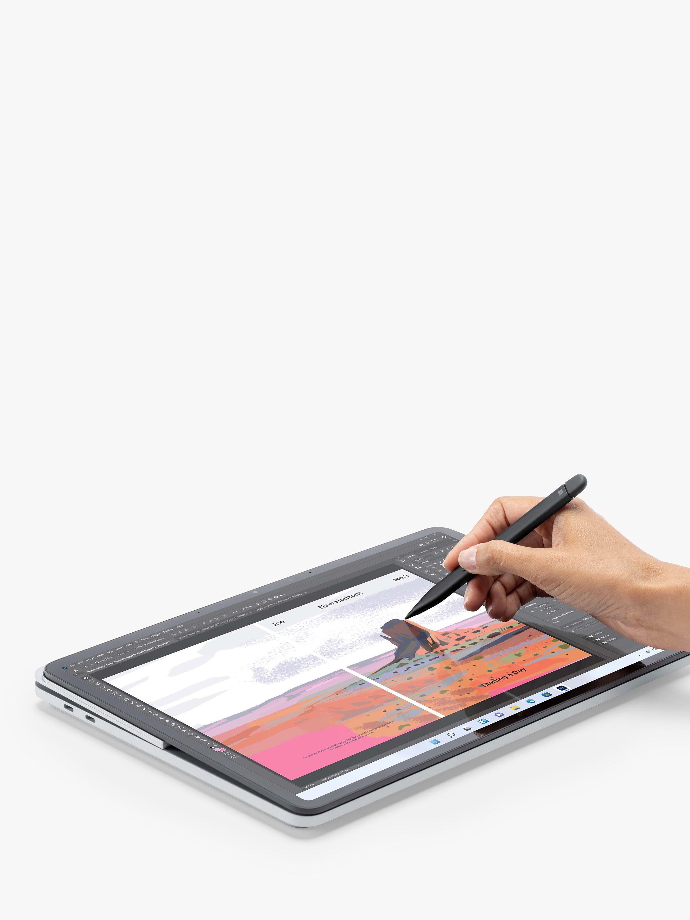 Super speedy, super portable, super powerful. The Surface Studio means business. Flexing to meet the demands of your work, from the art studio to the board room, its 120Hz touchscreen display makes everything feel super fluid and responsive on-screen. Run circles around complex spreadsheets and 3D rendering with a hefty 32GB of RAM, and there's up to 18 hours of battery life to ensure you stay productive all day, every day. It's everything you need and more to make the most out of Windows 11.