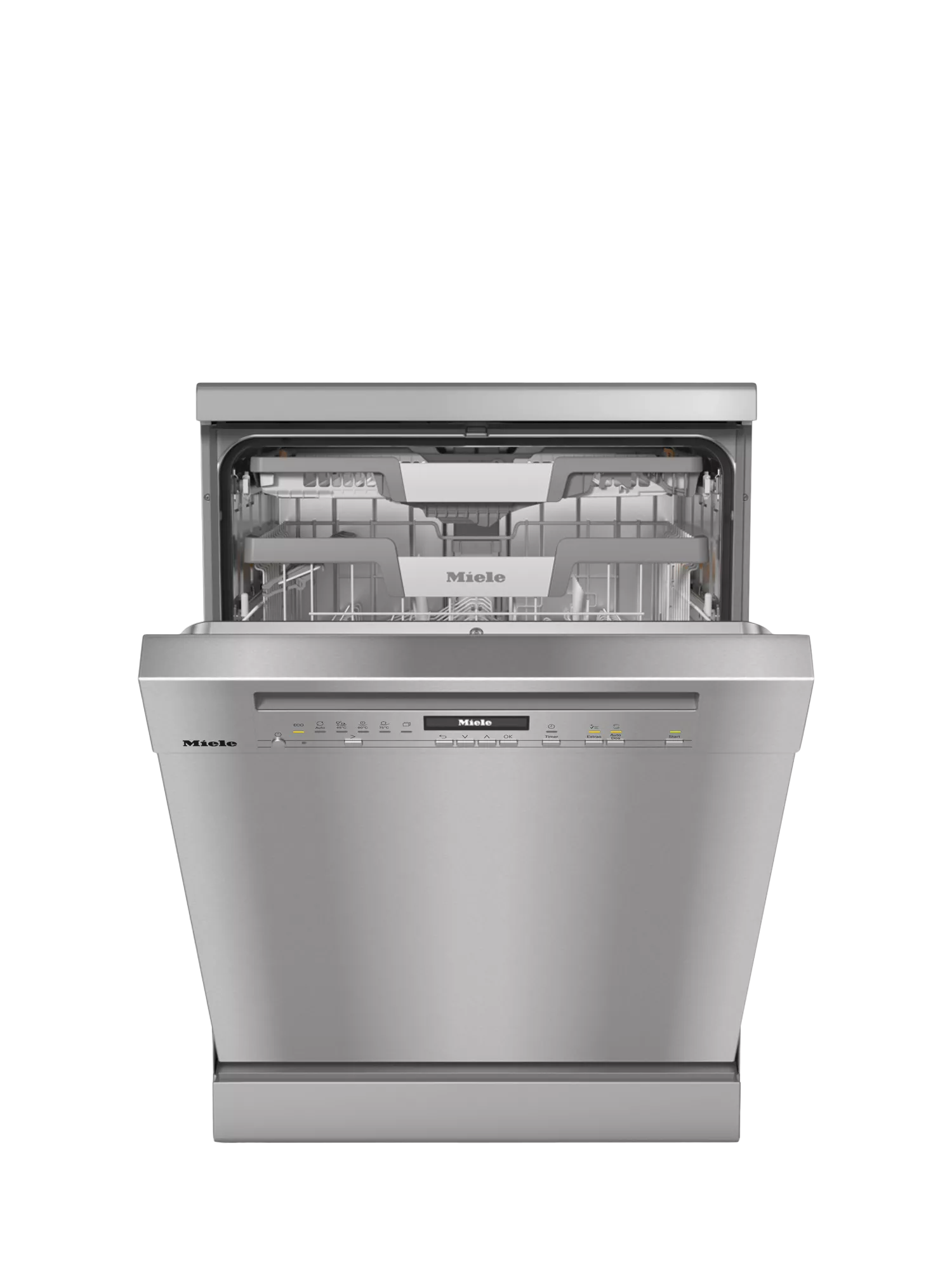 Miele’s G 7040 SC is a freestanding dishwasher with automatic dispensing thanks to AutoDos with integrated PowerDisk.