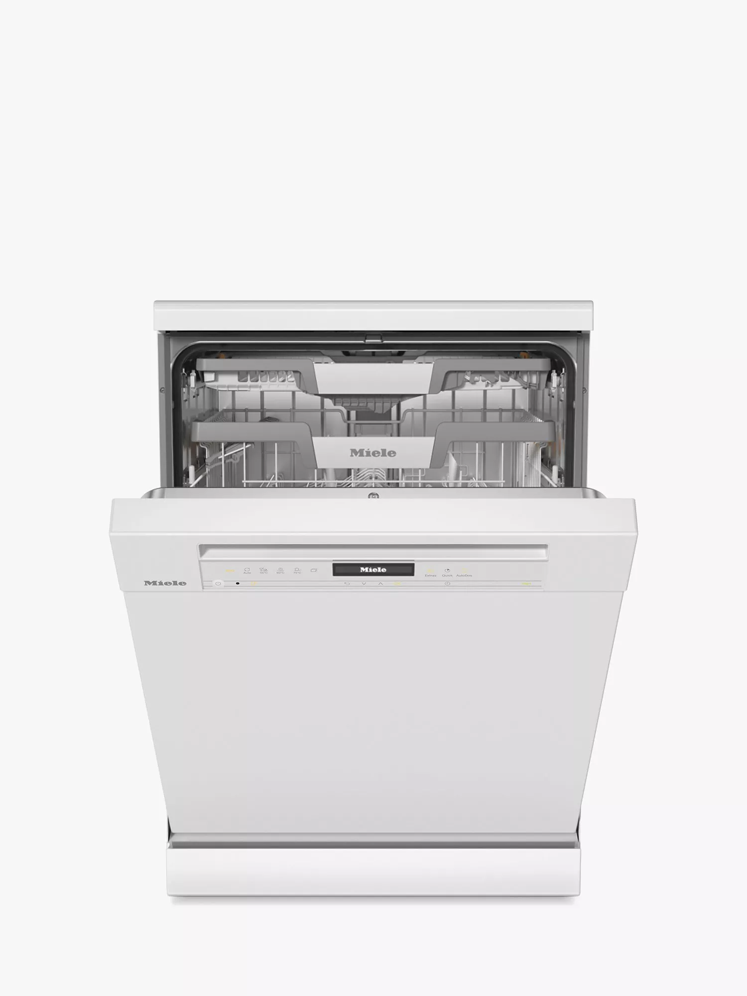 Gone are the days of being tied to the kitchen sink after dinner. Miele has packed this machine with a range of time-saving options and energy-saving features that'll ensure you're never stuck scrubbing dirty dishes again. The speedy 59 minute quick wash leaves everything sparkling - handy when you've guests coming over and need dishes clean in a hurry - and the adjustable racking means there's space for any larger items that need a clean too. It's even fitted with AutoDos, an automatic dispensing system that dispenses the right amount of detergent at the right time for you, so you'll never accidentally forget the washing tablet again!