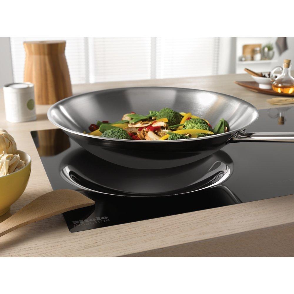 The sophisticated Miele KM6356 induction hob features an innovative integrated wok zone, with a made to measure pan included. With precise temperature control, the KM6356 not only delivers a fantastic stir fry, but is great for a range of dishes, including risottos, soups and even delicate sauces.