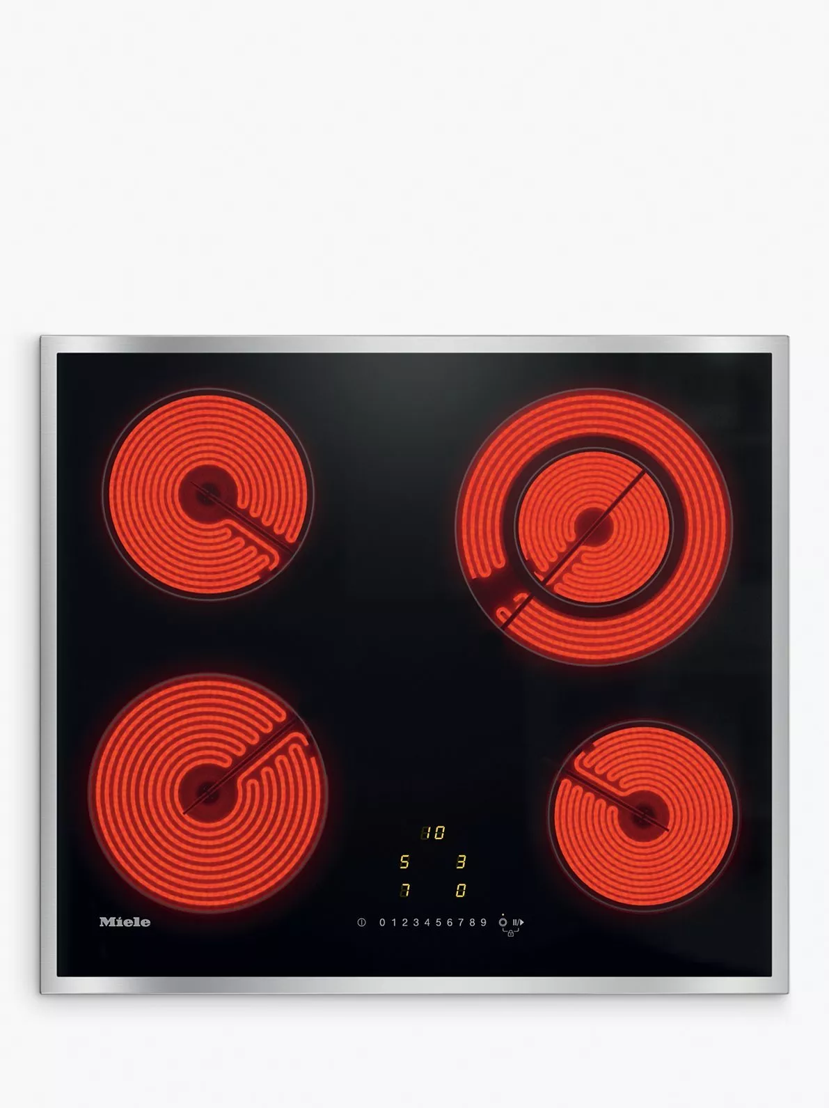 This sleek Miele KM6520FR Electric hob will look the part in any modern kitchen. It boasts easy-to-use front-mounted touch controls for effortless cooking.