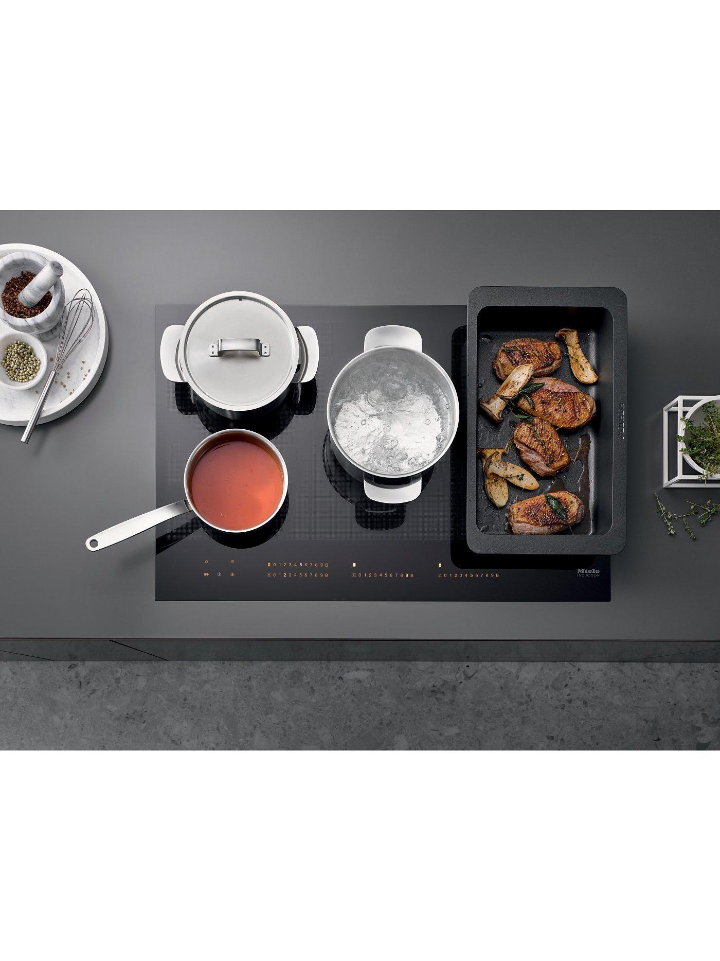 Miele Con@ctivity enables the hob to communicate with the hood and automatically select the correct fan setting to ensure the optimum room microclimate at all times. It also switches itself off automatically when you've finished cooking. Alternatively, you can override Con@ctivity with manual operation.