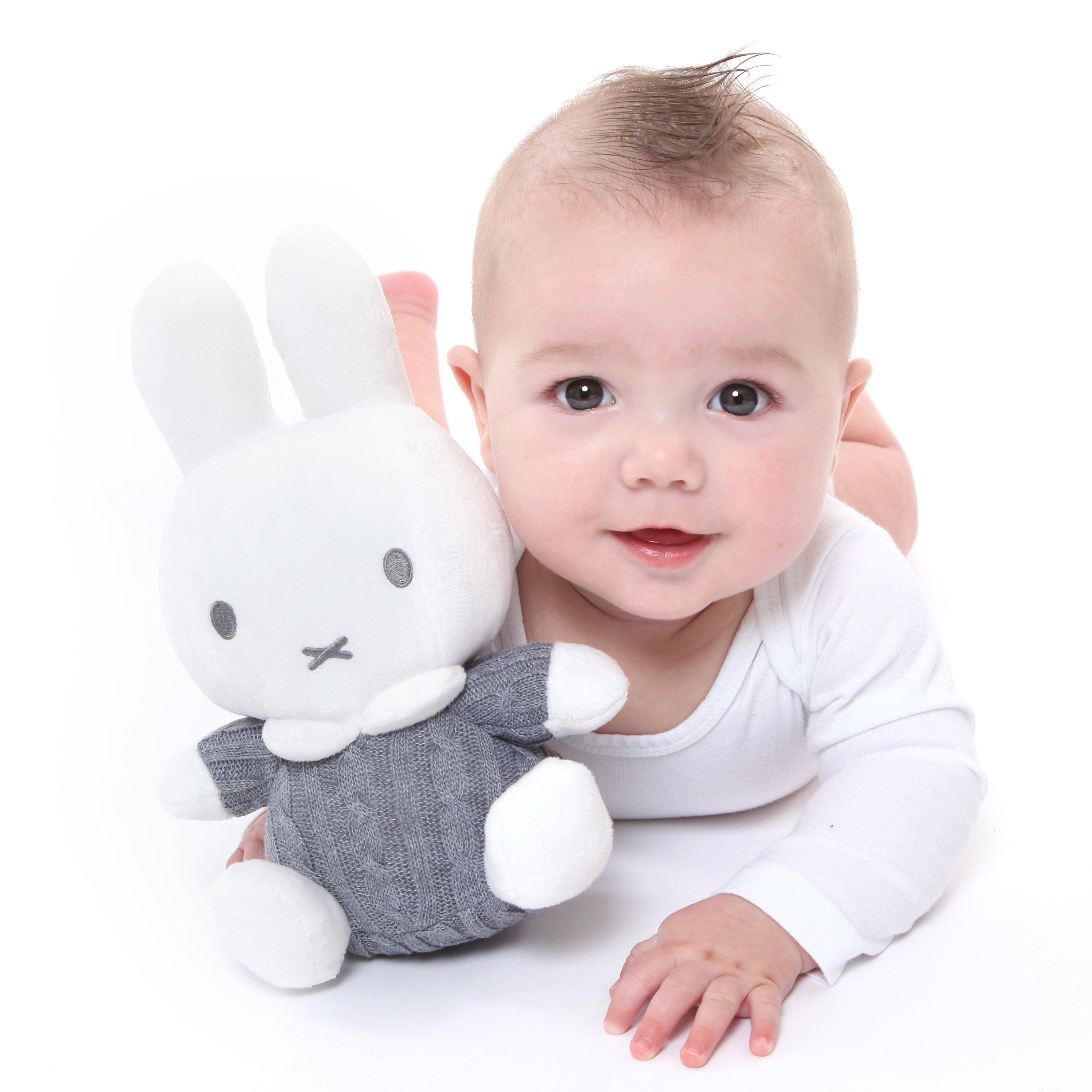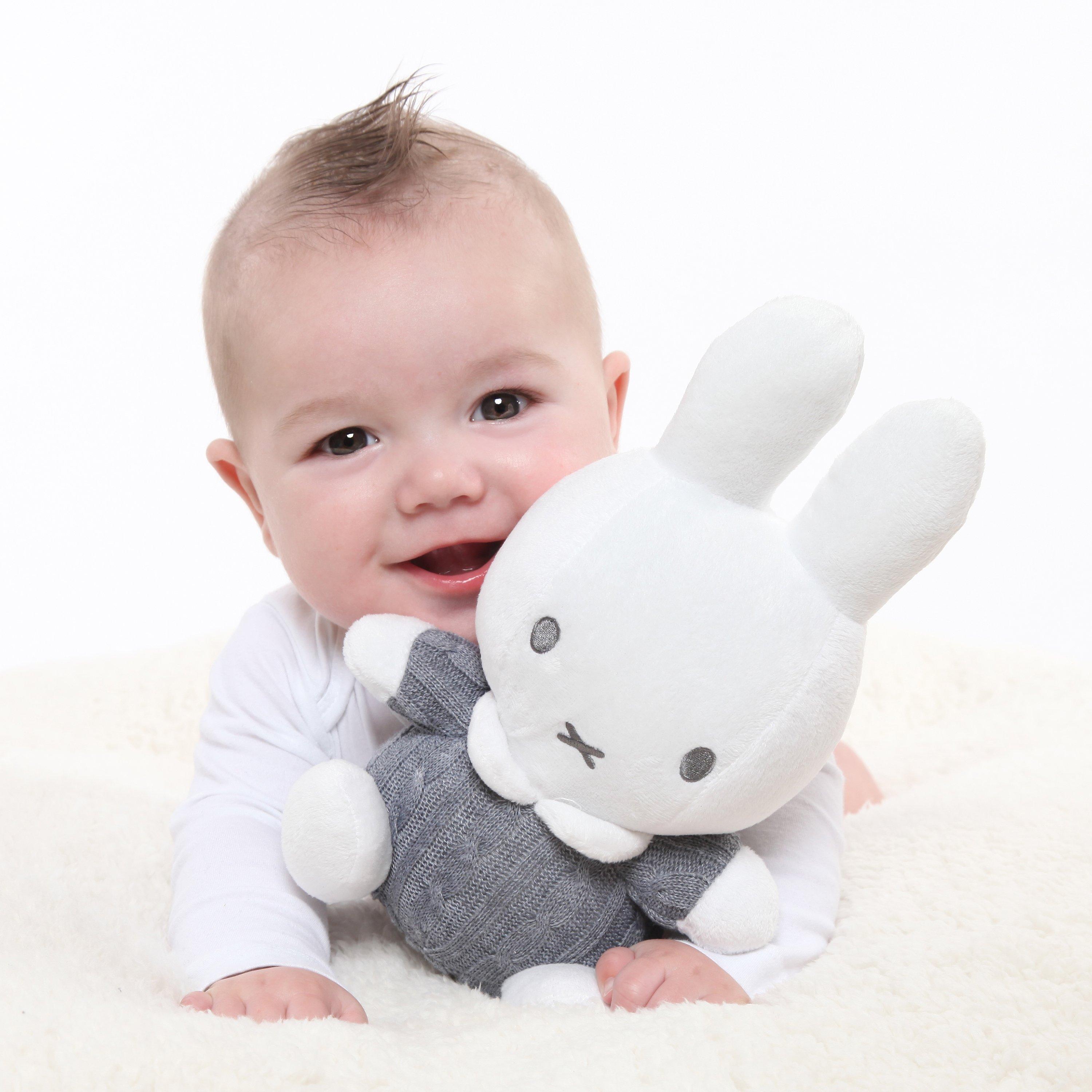 A lovely gifting option, this sweet cuddle bunny from Miffy is a great companion for baby to cuddle and snuggle, with a textured cable knit body and friendly eyes.