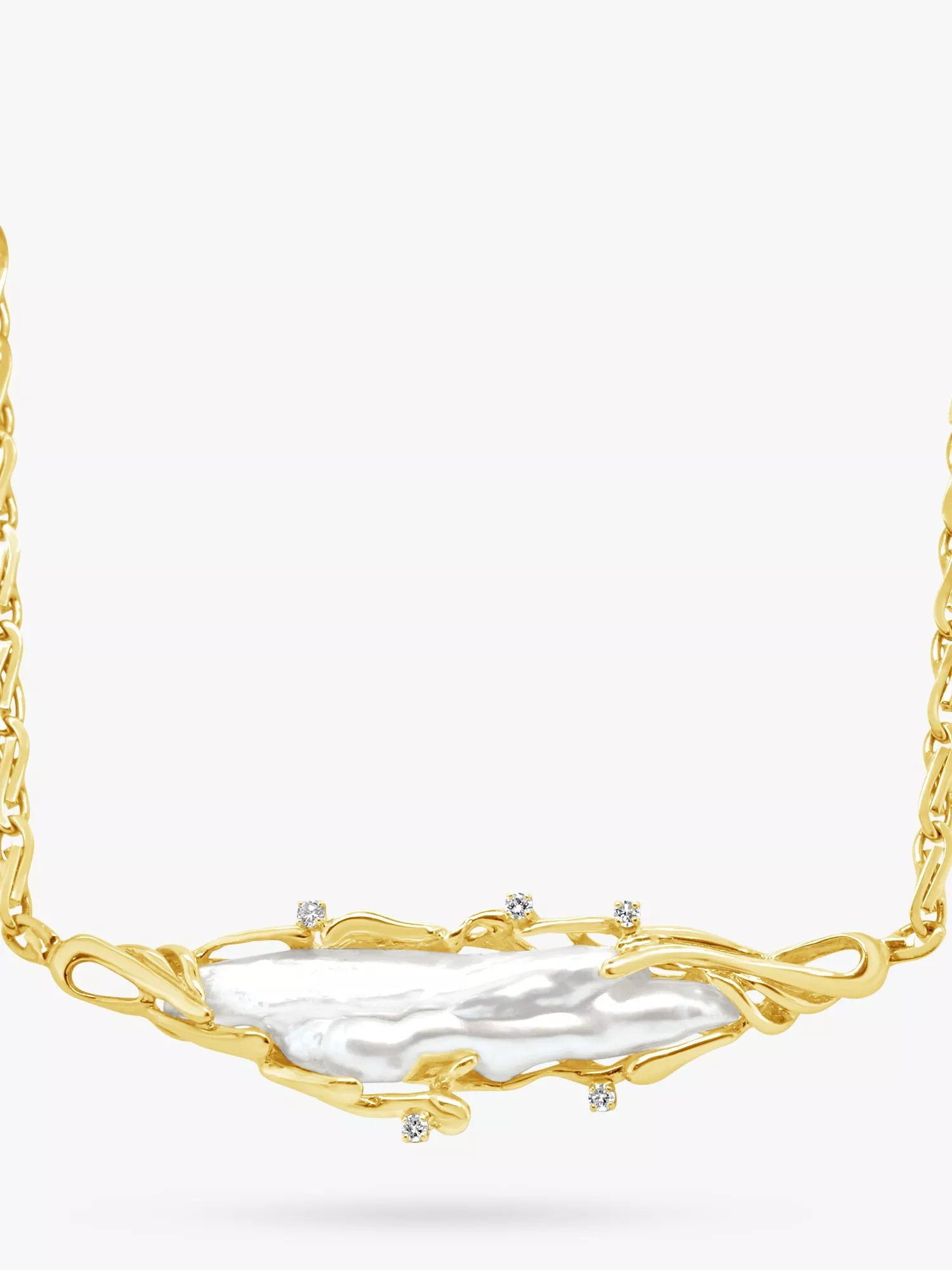 Milton & Humble JewelleryPre-Loved 14ct Yellow Gold Freshwater Pearl & Diamond Statement Necklace