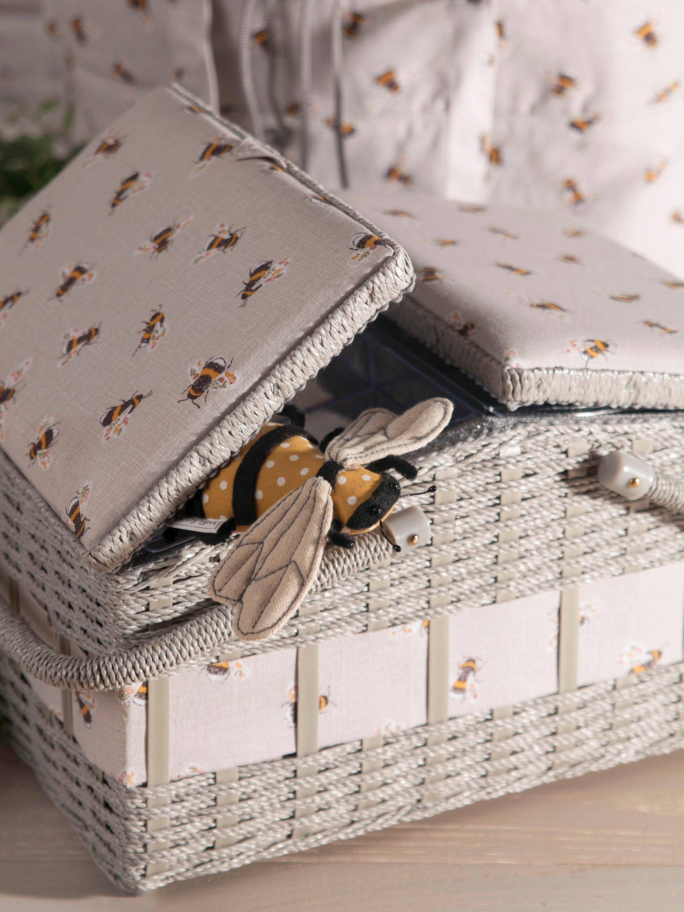 Covered in soft printed cotton, this twin-lid sewing basket has a double grab handle that allows for ease of transport enabling you to sew on the go. It also has removable plastic trays with plenty of compartment space for needles, thimbles and threads allowing you to organise your sewing kit in preparation for your next project. The removable trays lift to reveal a spacious compartment that can be used for storing fabrics and other essential equipment. This basket is a must-have for serious sewers.