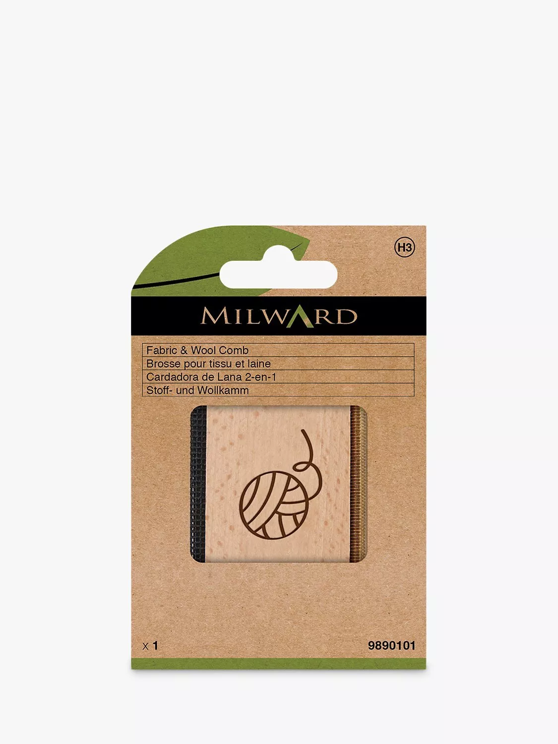 A handy fabric comb featuring one side for wools and cashmere and another side for all other fabrics.