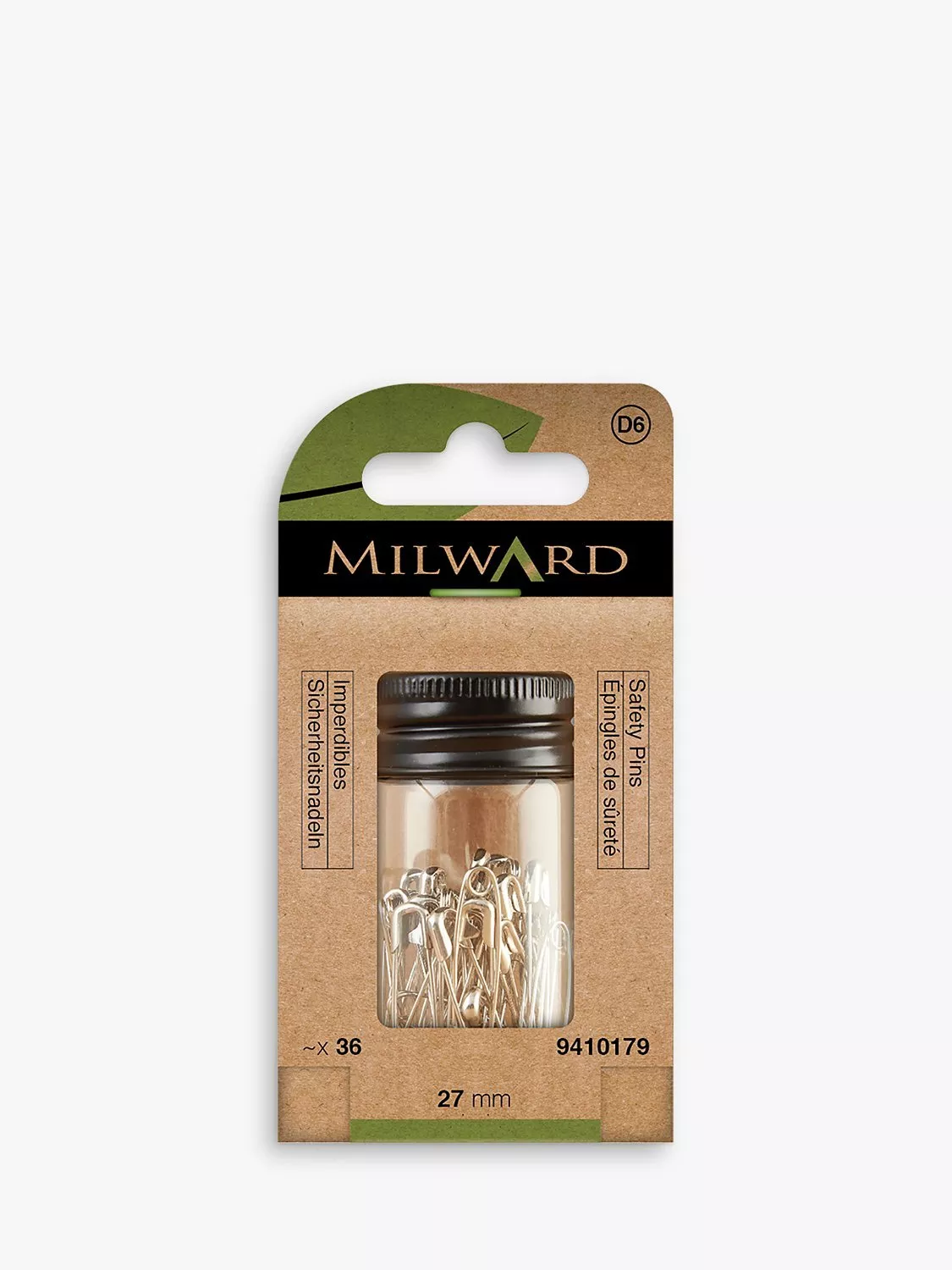 Hardened and tempered quality safety pins in a useful closable storage box.