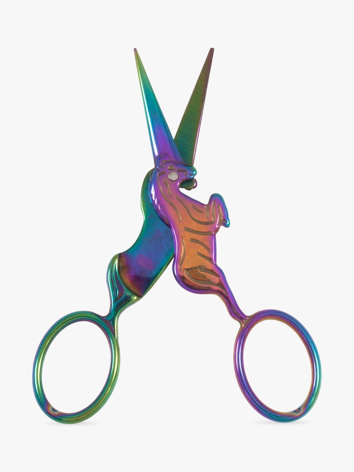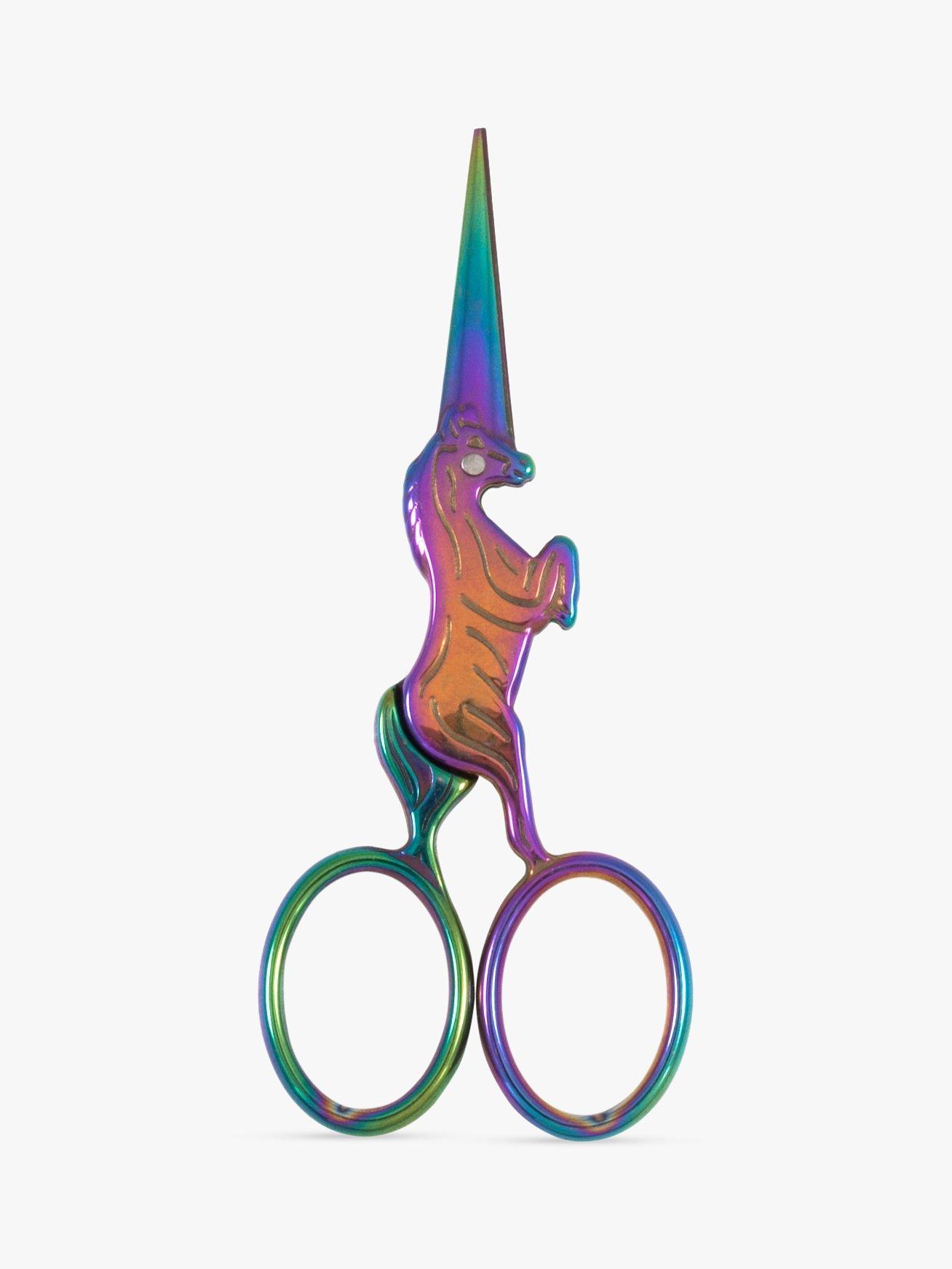 These four inch embroidery scissors from Milward feature a fun unicorn design and multi-coloured finish.