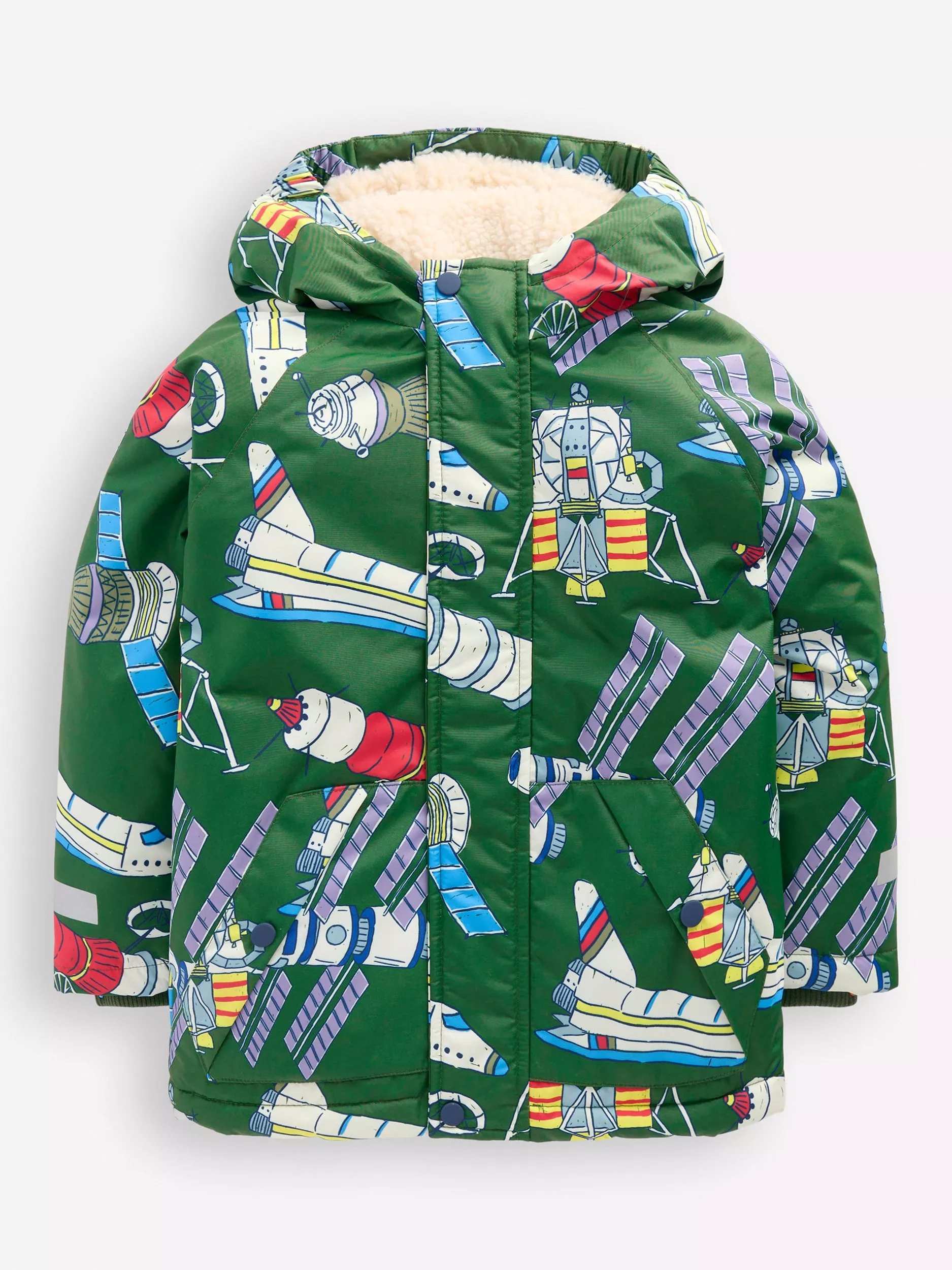 A coat for every caper. This snuggly borg lined anorak is cleverly built to face every element, from summer showers to thunderstorms.