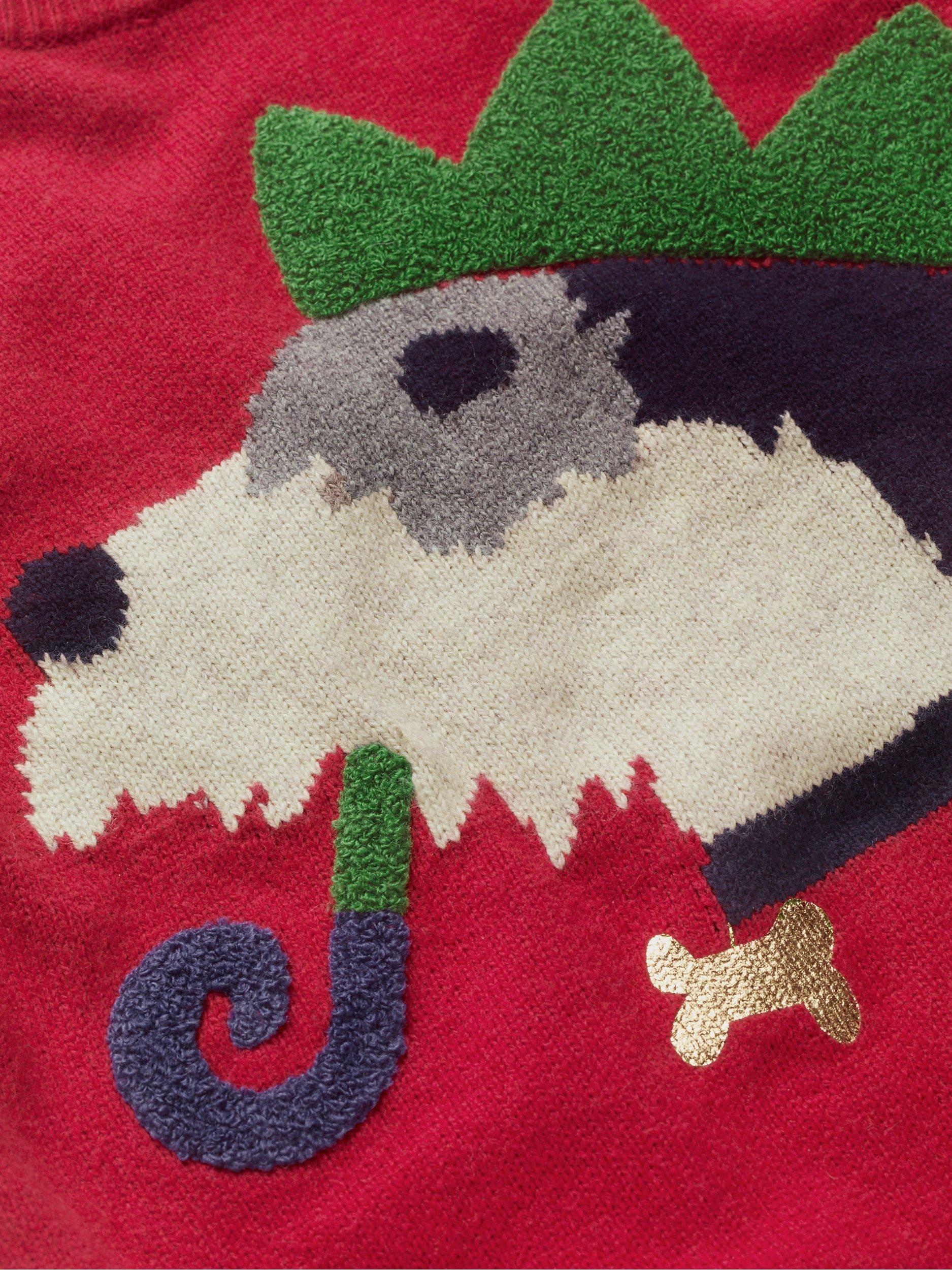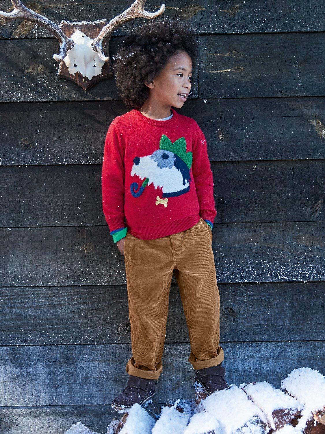Crafted from a super-soft cotton blend with a hint of merino wool for warmth, this jumper features a crew neckline and cute dog in a Christmas hat intarsia.