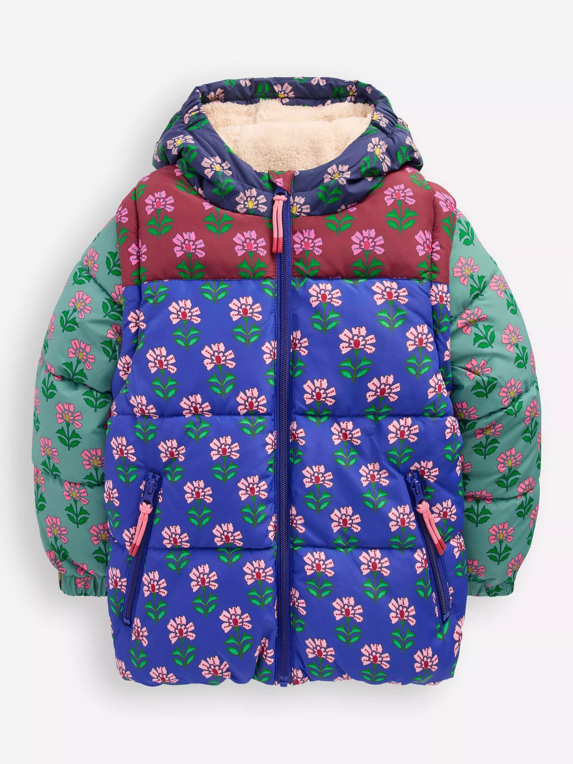 This padded coat is something special with its hotchpotch pattern and soft sherpa lining (in the hood too). Until it gets really cold, zip off the sleeves and wear the gilet over a cosy cable knit or roll-neck tee.