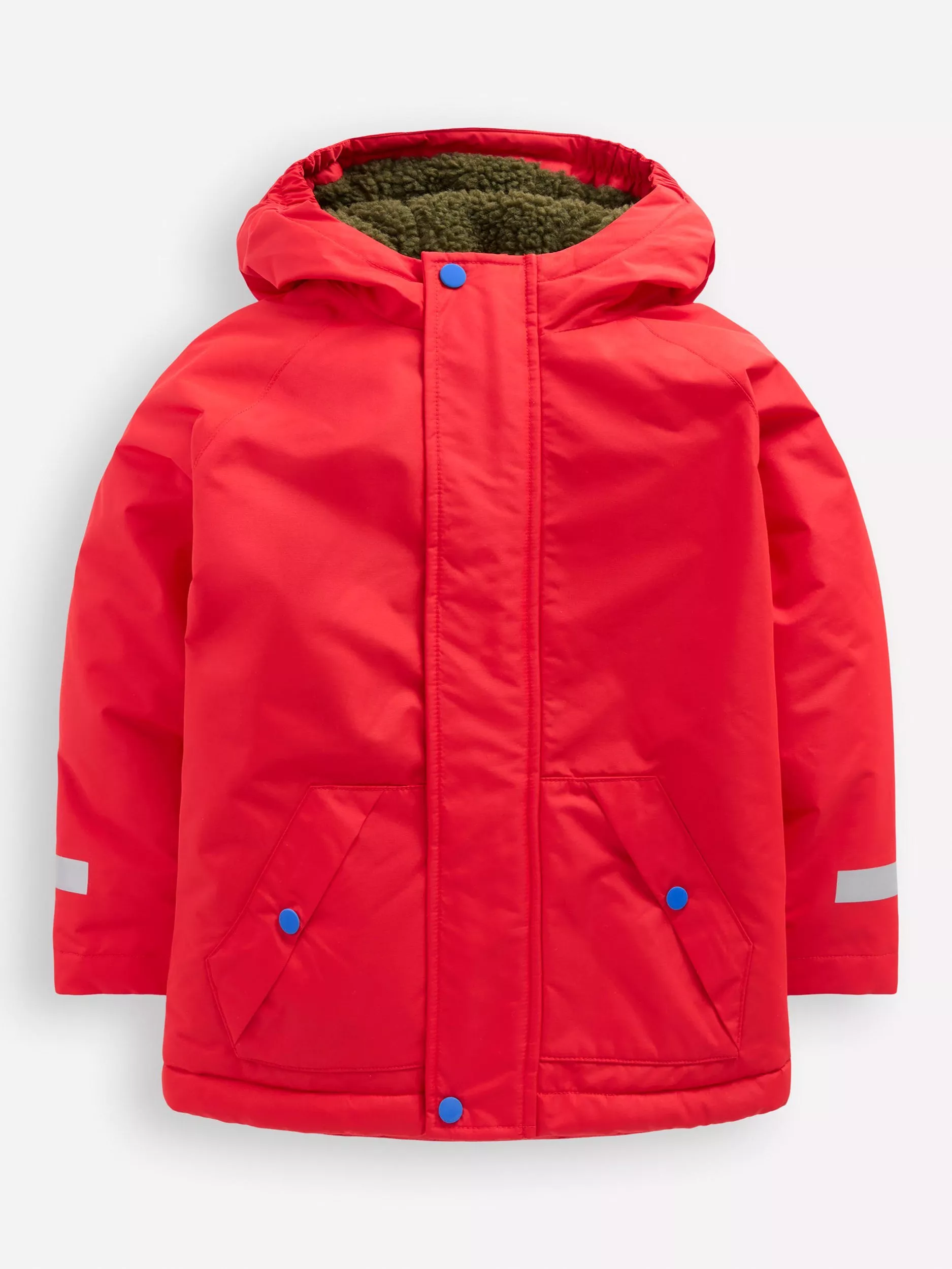 Mini BodenKids' Borg Lined Hooded Anorak, Red