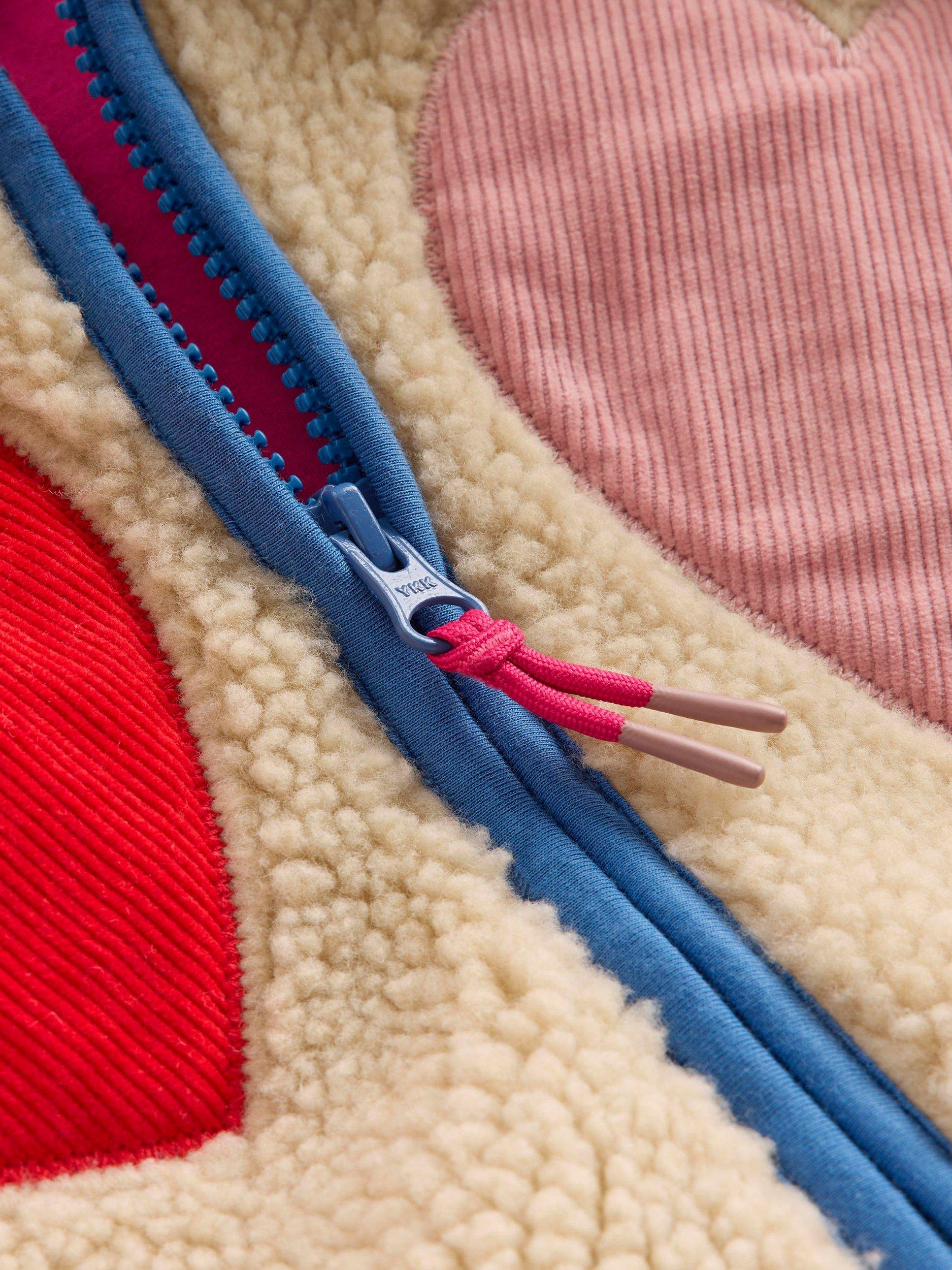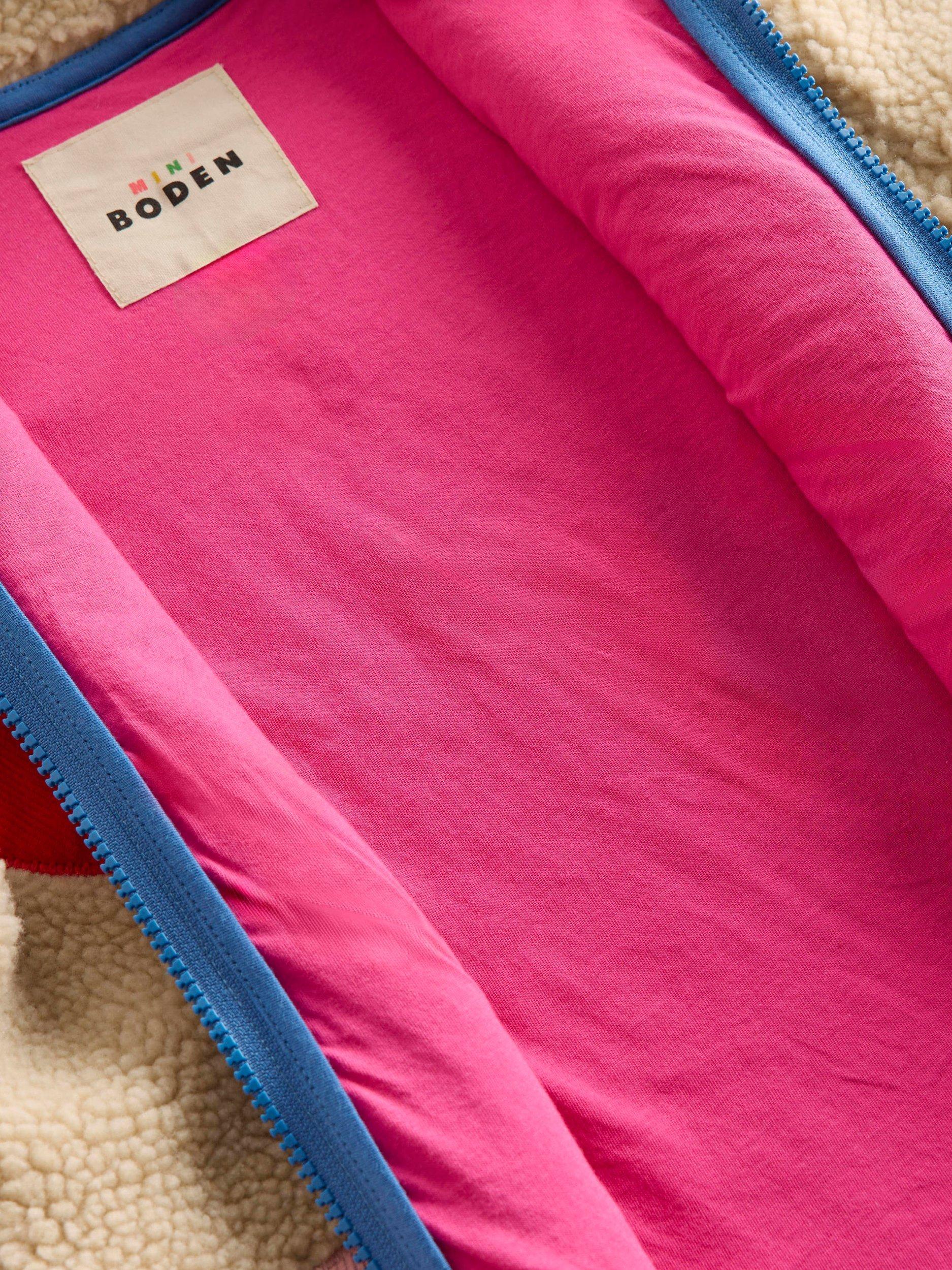 These zip-up jackets are like wearing a hug with their cosy teddy-bear style fabric and chunky collar. Not only is the borg super-duper snug, it's also bright and colourful. Finished with a dipped hem at the back and pockets.
