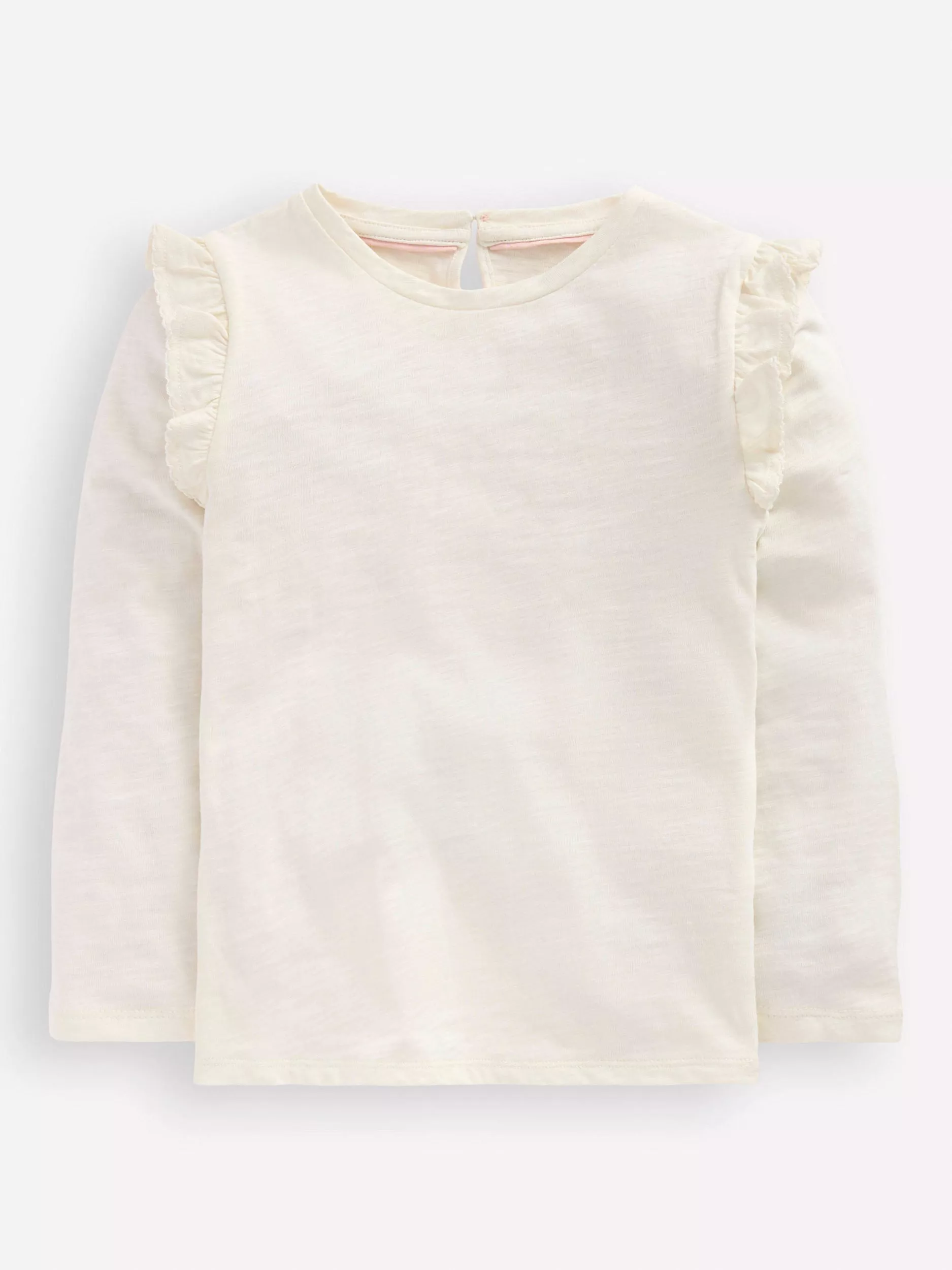 Mini BodenKids' Cotton Frill Sleeve Top, Soft Ivory